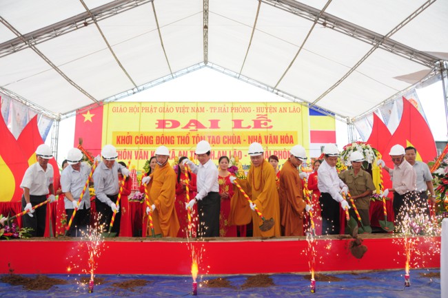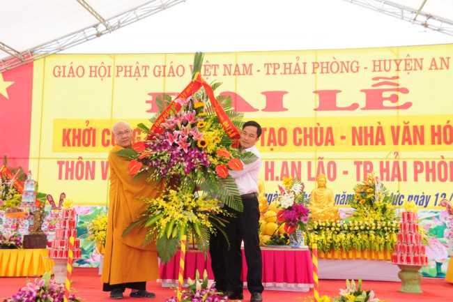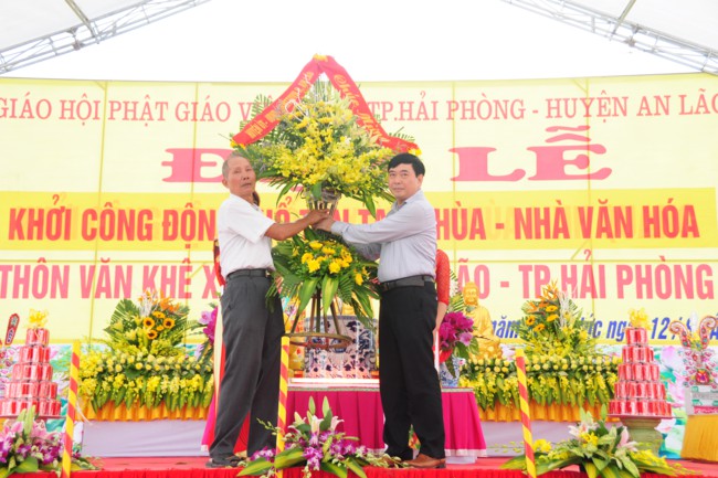 Về phía chính quyền TƯ có sự hiện diện của ông: TS. Vũ Huy Hoàng – Ủy viên TƯ Đảng, Bộ trưởng Bộ công thương nước CNXH Chủ nghĩa ViệtNam. Về phía chính quyền địa phương có Ông: Phạm Văn Mợi – Thành ủy viên, bí thư huyện ủy huyện An Lão, ông: Nguyễn Văn Thông – Chủ tịch UBND huyện An Lão, cùng các ông bà lãnh đạo đại diện Huyện ủy, UBND, HĐND, UB MTTQ Việt Nam, các ban ngành đoàn thể huyện An Lão, xã An Thọ, thôn Văn Khê. Về phía tôn giáo bạn có sự hiện diện của Linh mục Nguyễn Văn Hiển – Chính xứ Giáo xứ Văn Khê cùng giáo đoàn và đông đảo các nhà hảo tâm, các mạnh thường quân và bà con Phật tử gần xa, nhân dân địa phương.