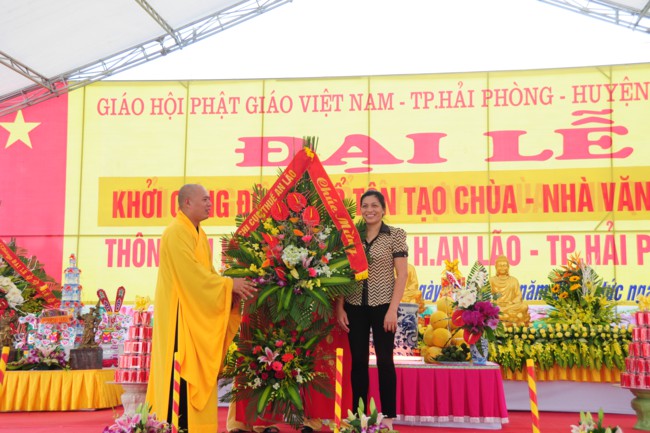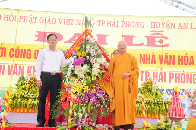 Quang lâm chứng minh buổi lễ có Hòa thượng Thích Quảng Tùng – Phó chủ tịch HĐTS kiêm trưởng Ban từ thiện TW GHPGVN, trưởng Ban trị sự GHPGVN thành phố Hải Phòng; Thượng tọa Thích Thanh Giác – Phó trưởng Ban thường trực Ban hoằng pháp TW GHPGVN, phó trưởng Ban thường trực BTS GHPGVN thành phố Hải Phòng; Thượng Tọa Thích Thanh Phong – Ủy viên thường trực HĐTS kiêm Trưởng Ban Kinh tế tài chính TƯ GHPGVN; Đại Đức Thích Bản Điền – Trưởng BTS GHPGVN huyện An Lão, Đại Đức Thích Quảng Minh – Ủy viên thường trực BTS GHPGVN Tp. Hải Phòng, trưởng BTS GHPGVN huyện Tiên Lãng cùng đông đảo chư tôn đức Tăng Ni ủy viên BTS GHPGVN huyện An Lão, huyện Tiên Lãng.