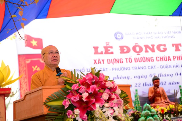Quang lâm chứng minh buổi lễ có sự hiện diện của Hòa thượng Thích Quảng Tùng – Phó chủ tịch HĐTS, trưởng Ban từ thiện TƯ GHPGVN; TT. Thích Tục Khang – Ủy viên Ban Phật giáo Quốc tế TƯ GHPGVN, trưởng BTS GHPGVN huyện Cát Hải; Ni sư Thích Tâm Chính – Trưởng BTS GHPGVN quận Hải An, Đại đức Thích Bản Giáo – Trụ trì chùa Phúc Khánh, trưởng BTC buổi lễ, cùng đông đảo chư tôn đức Tăng ni trụ trì các chùa trong và ngoài thành của thành phố Hải Phòng.