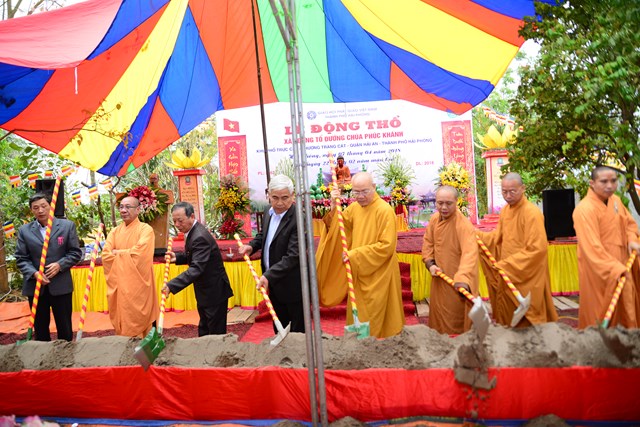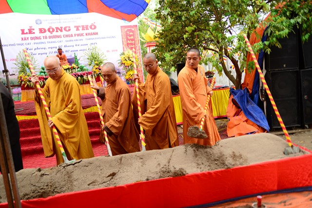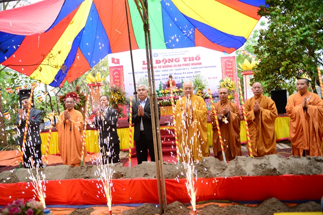 Kết thúc buổi lễ, chư tôn đức chứng minh và các cấp chính quyền địa phương đã tổ chức lễ dâng hương cầu nguyện thế giới hòa bình, chúng sinh an lạc và chính thức tổ chức lễ động thổ xây dựng ngôi Tổ Đường chùa Phúc Khánh trong không khí hoan hỷ, ấm tình đạo vị.