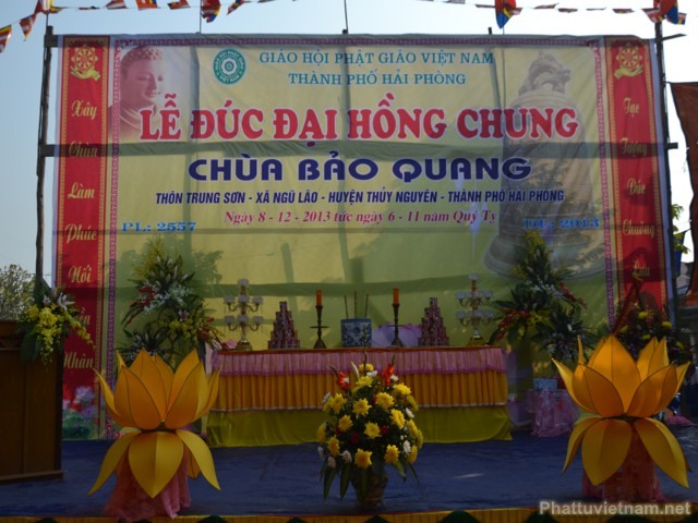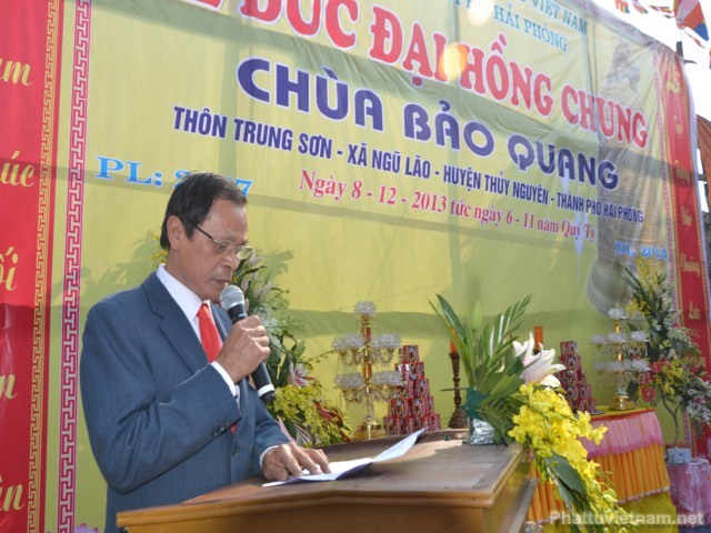 Quang lâm và chứng minh buổi lễ có sự hiện diện của Đại Đức Thích Tục Thành, Ủy viên BTS GHPGVN Tp. Hải Phòng kiêm trưởng Ban trị sự GHPGVN huyện Thủy Nguyên, Ni Sư Thích Đàm Tiến – Nguyên trưởng Ban trị sự GHPGVN huyện Thủy Nguyên, Ni Sư Thích Đàm Vân, thư ký BTS GHPGVN huyện Thủy Nguyên, SC. Thích Tịnh Nguyên, trụ trì chùa Bảo Quang, Chư tôn thiền đức Tăng Ni một số chùa trên địa bàn Hải Phòng, huyện Thủy Nguyên cùng đông đảo bà con Phật tử gần xa và nhân dân địa phương.