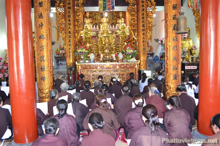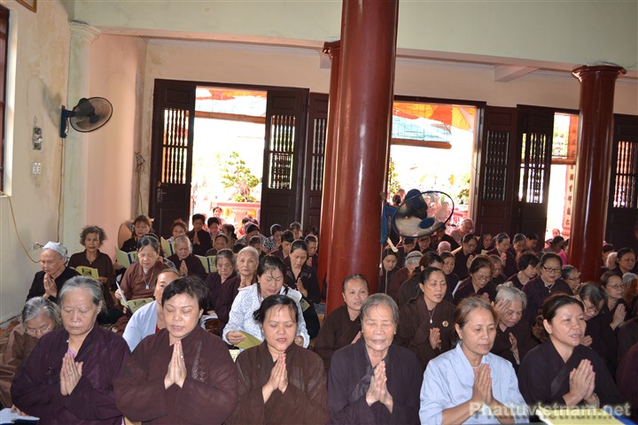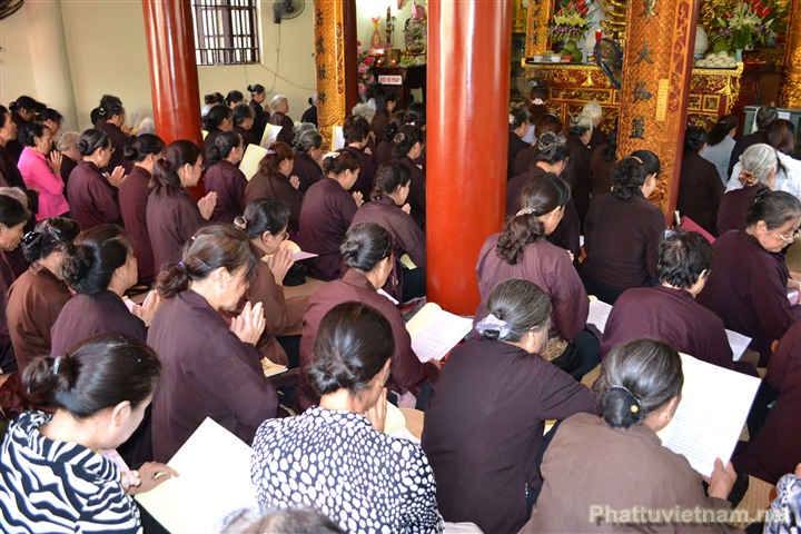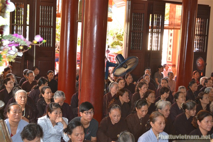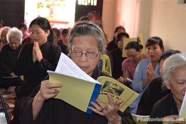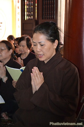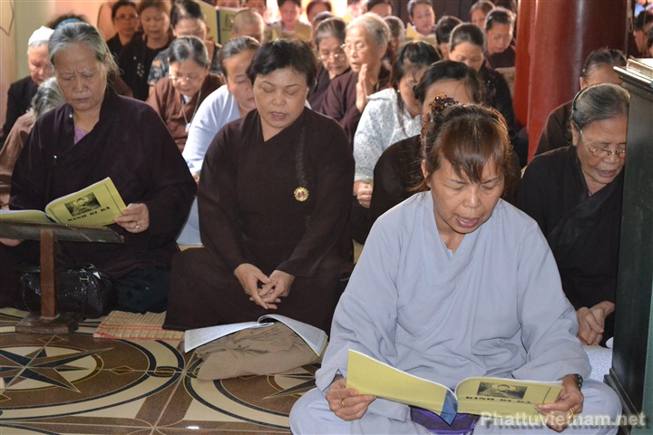 Trước khi kết thúc buổi lễ, chư tôn đức và bà con Phật tử đã lên khóa lễ tụng kinh A Di Đà để cầu nguyện cho giác linh cố Ni Sư Thích Đàm Luân được thượng phẩm, thượng sinh, cao đăng Phật quốc