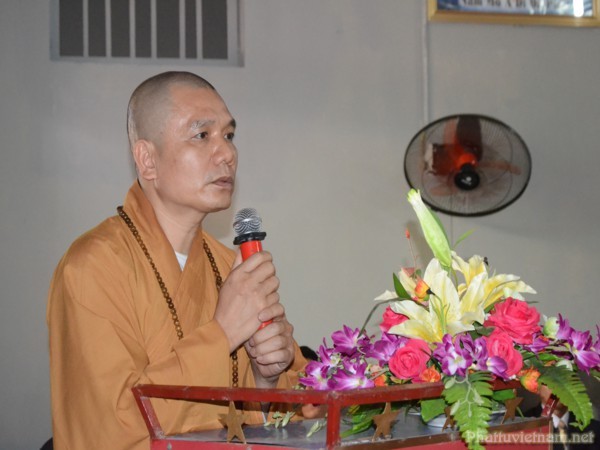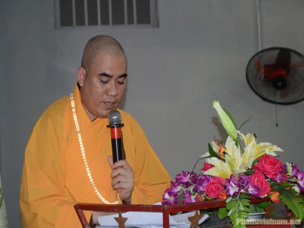 Nhân dịp này, Đại Đức. Thích Tục Thành – Trưởng BTS GHPGVN huyện Thủy Nguyên đã ban đạo từ tán thán công đức của Ni Sư trụ trì cũng như các nhà hảo tâm, các mạnh thường quân, các Phật tử gần xa, người góp công, người góp của để có kinh phí xây dựng khu giảng đường khang trang, tố hảo như ngày hôm nay.