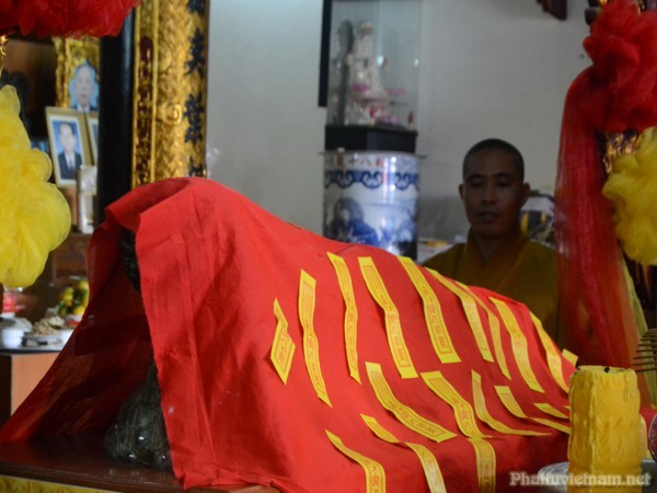 Chư tôn đức Tăng Ni và bà con Phật tử đã làm lễ trì chú, an vị tượng Phật Ngọc Thích Ca Mâu Ni nhập niết bàn tại Tổ Đường chùa Hàm Long.