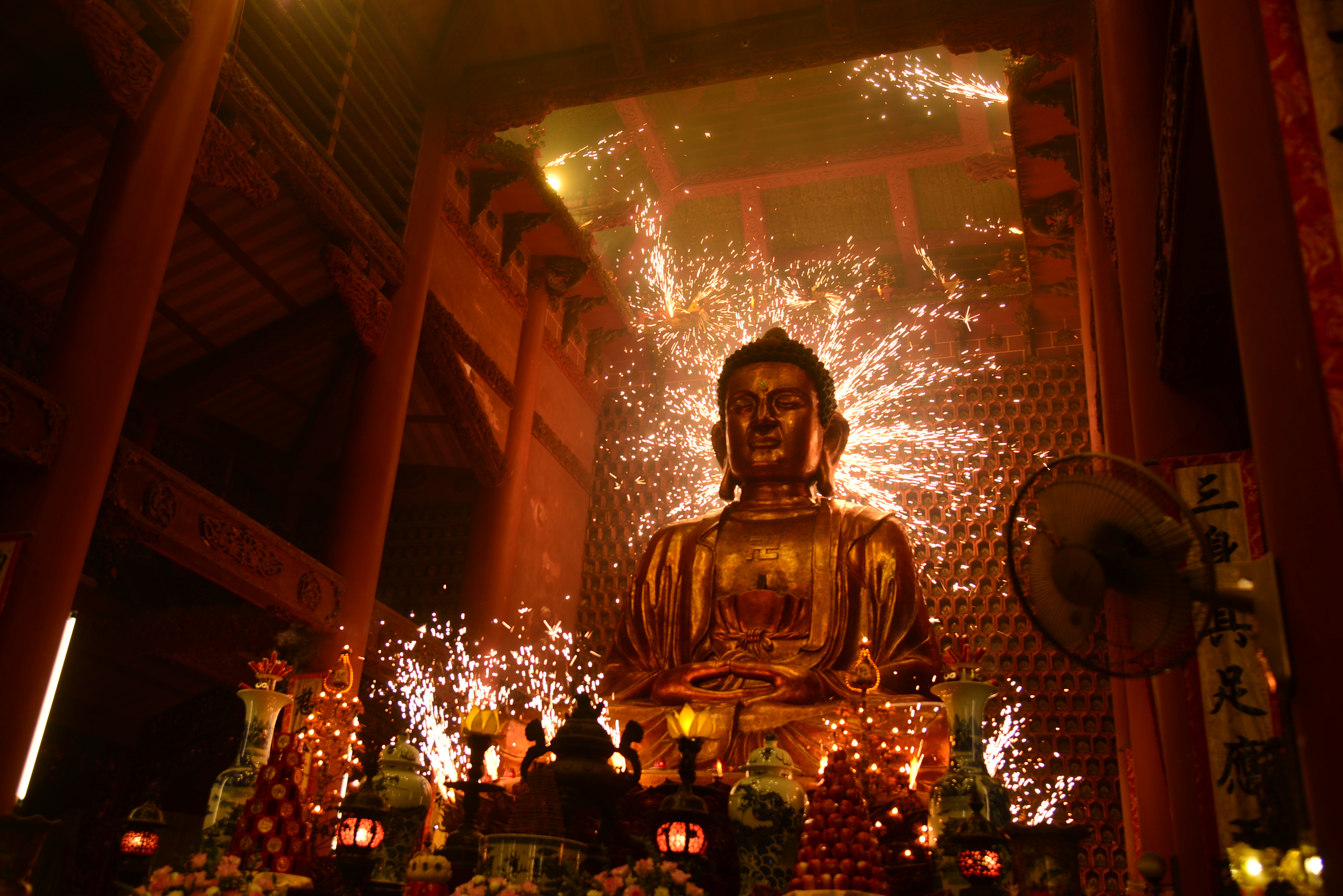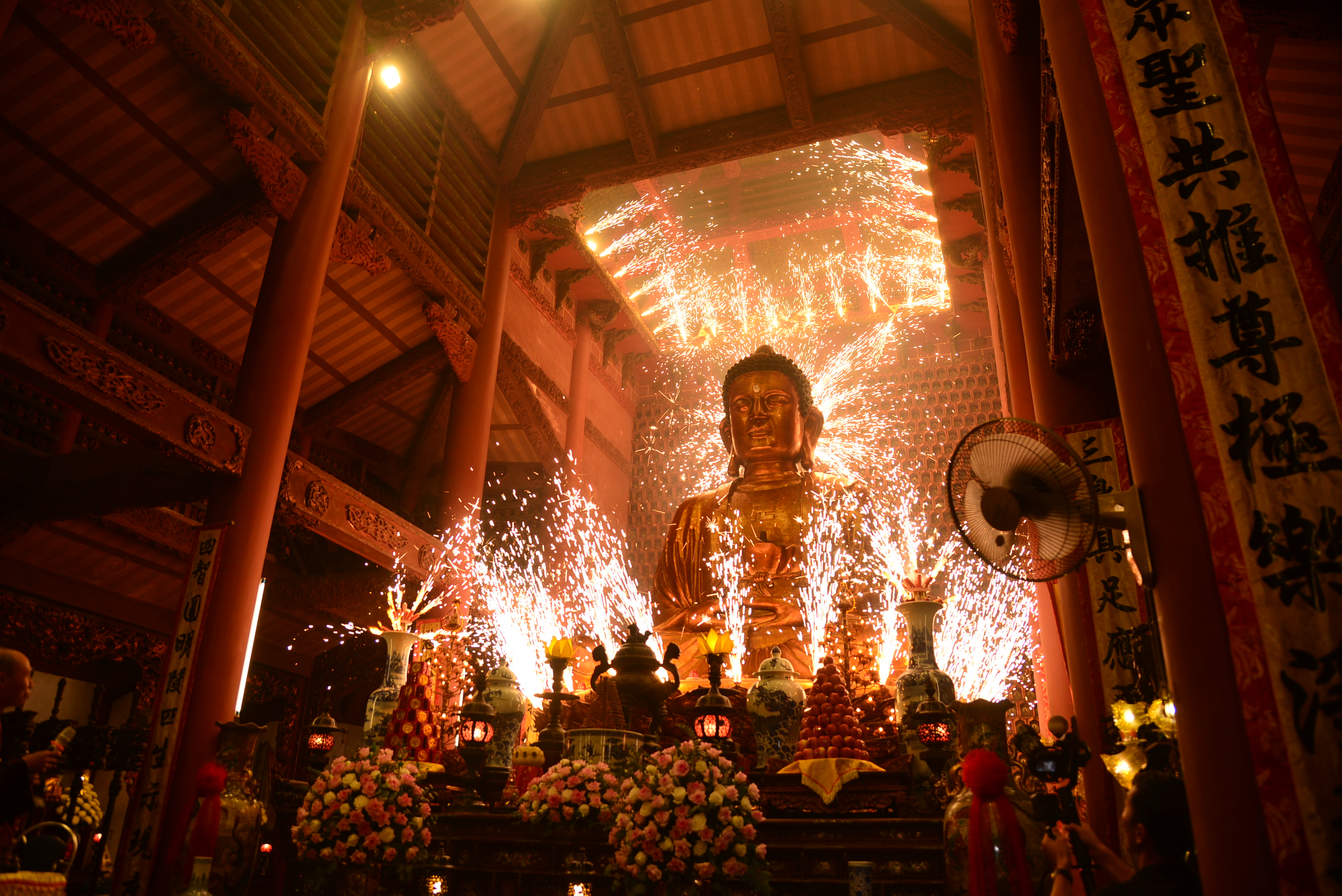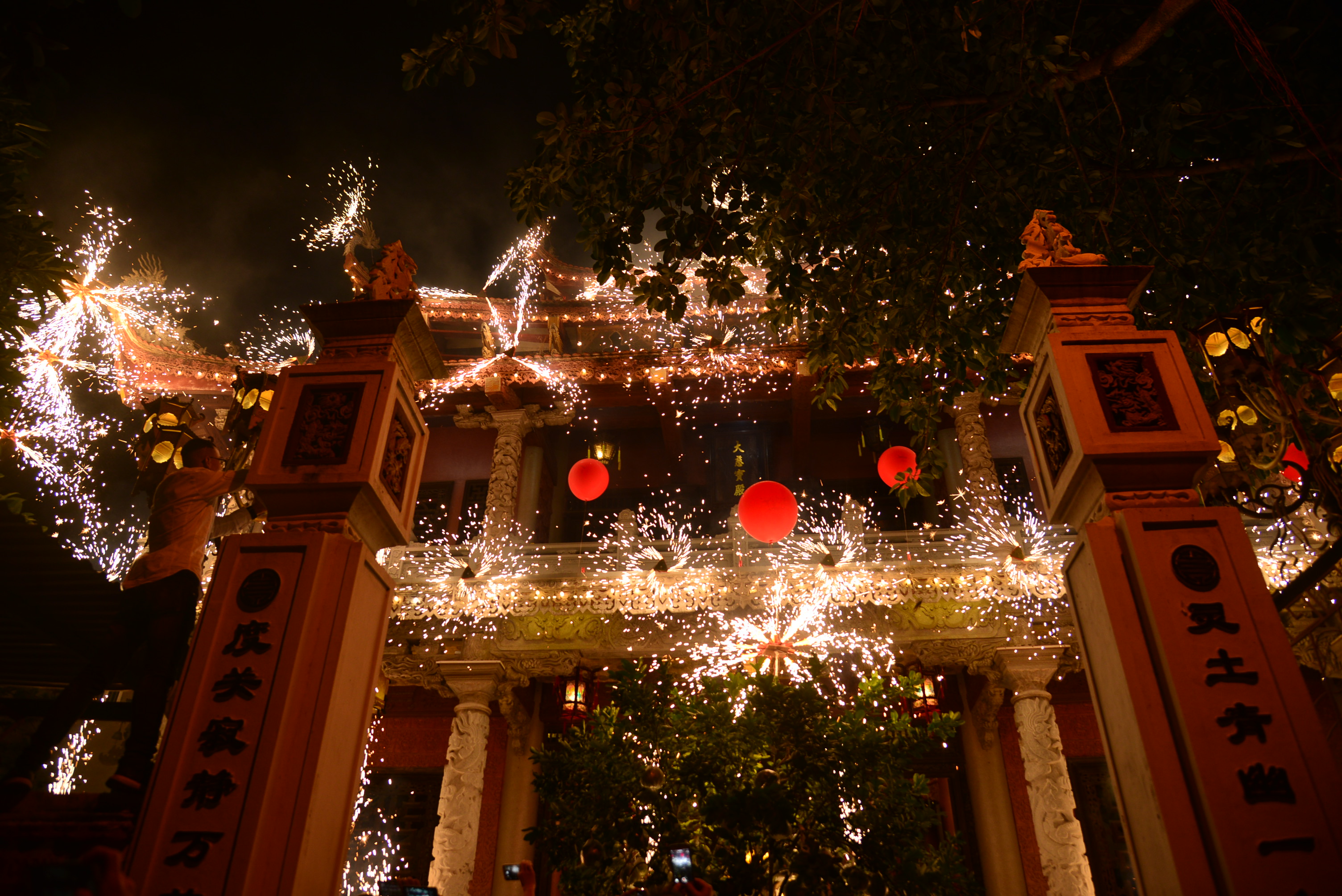 Bắn pháo hoa chúc mừng đôi bạn trẻ tại chính điện