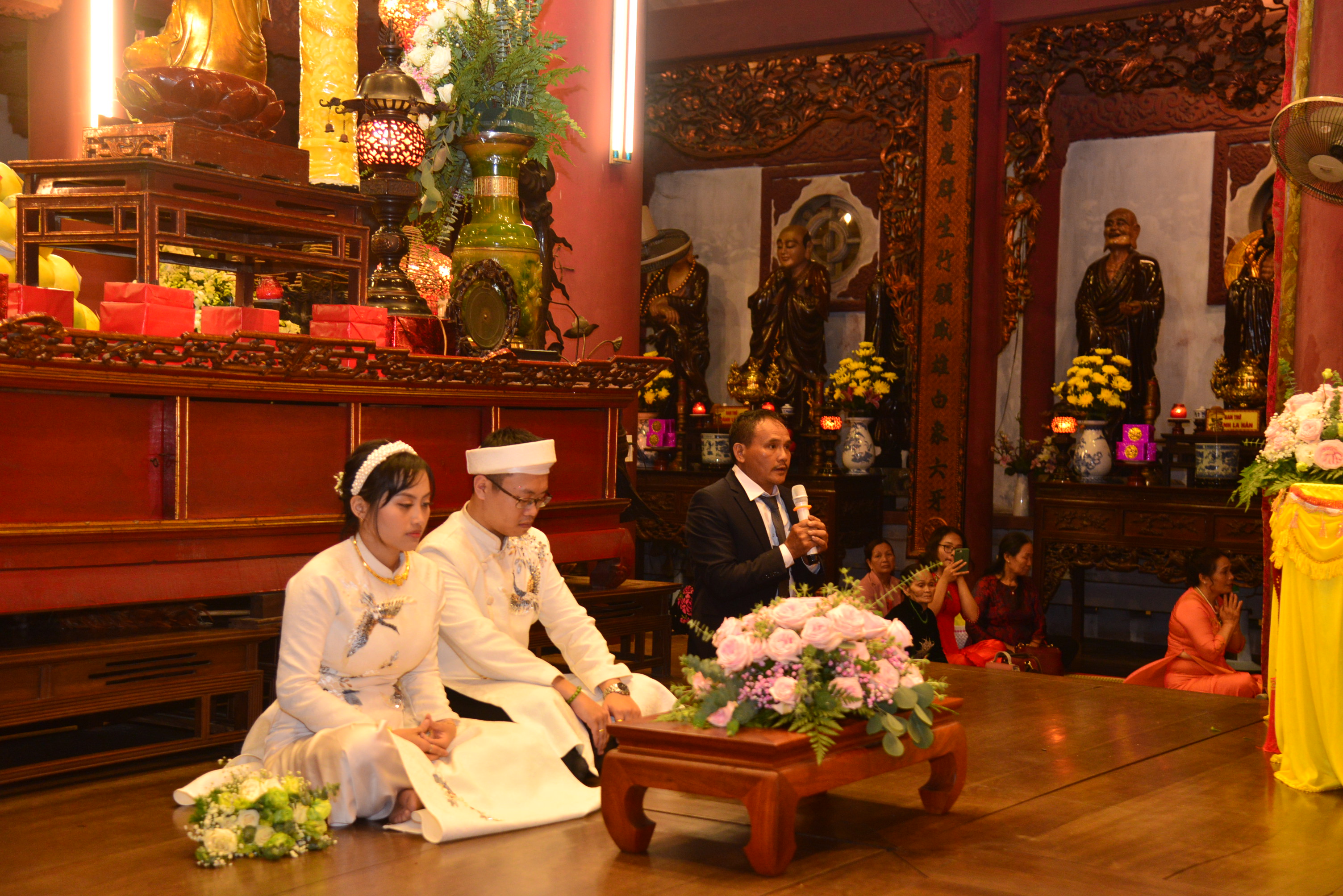 Đại đức trụ trì tụng kinh, chúc phúc cho đôi bạn trẻ