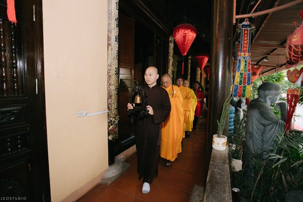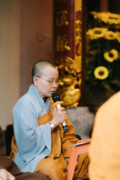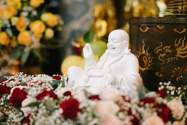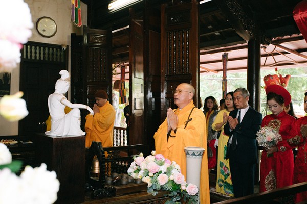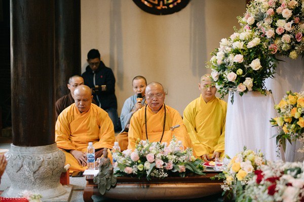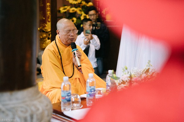 Tại buổi lễ, tân lang và tân nương đã được nghe Thượng tọa Thích Thanh Giác chia sẻ về lời Phật dạy về đạo lý vợ chồng trong kinh Thiện Sinh. Thượng tọa đã căn dặn đôi bạn trẻ phải sống sao cho thật tốt, đúng với bổn phận của người làm vợ và người làm chồng, bổn phận của người con trong gia đình, bên nội cũng như bên ngoại. Người chồng phải hết mực yêu thương vợ và người vợ cũng phải rất mực yêu thương chồng, cho dù trong bất kỳ hoàn cảnh nào hay bất kỳ lý do gì thì vợ chồng cũng phải luôn sát cánh bên nhau, cùng nhau xây dựng mái ấm gia đình.