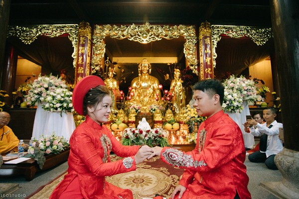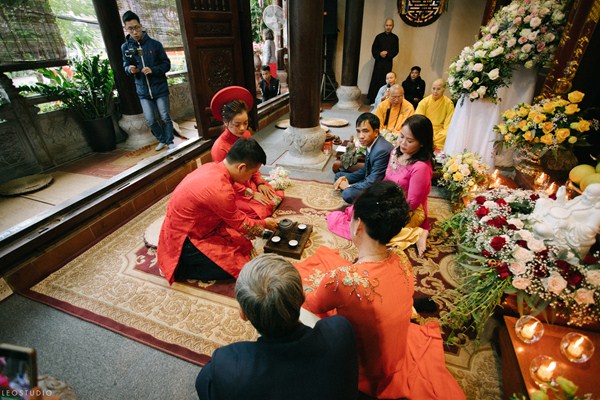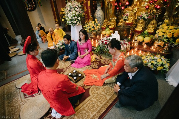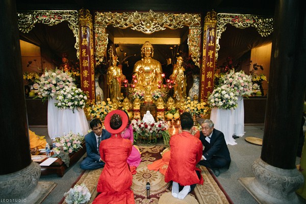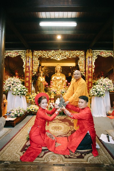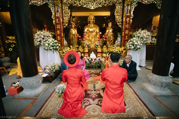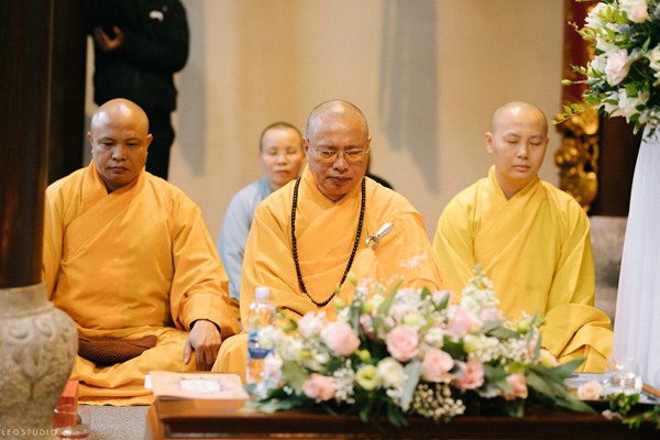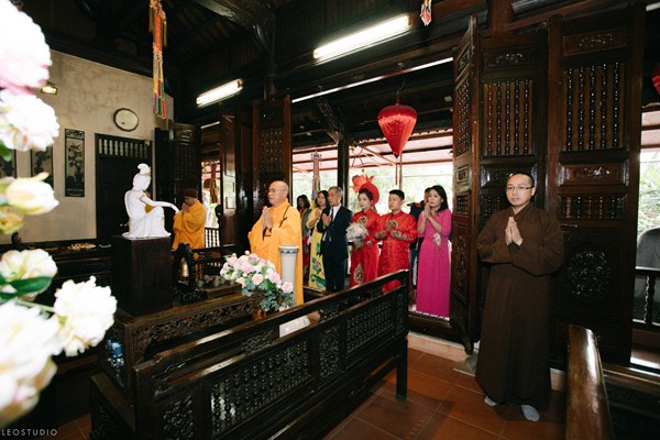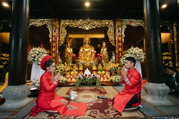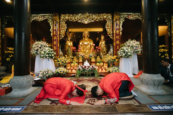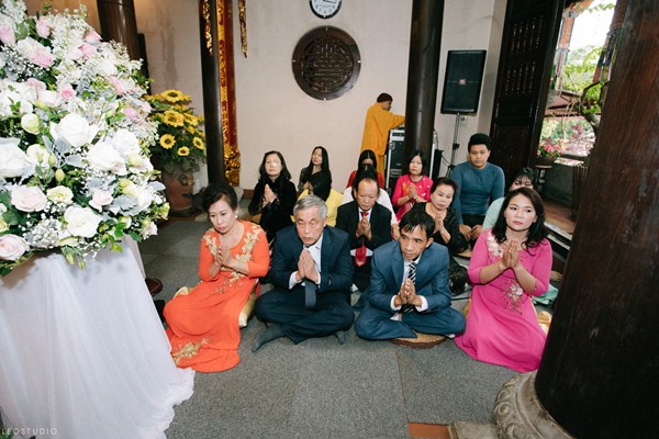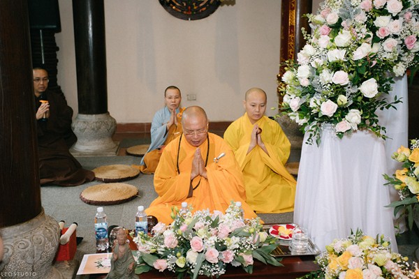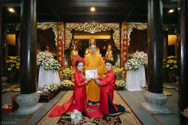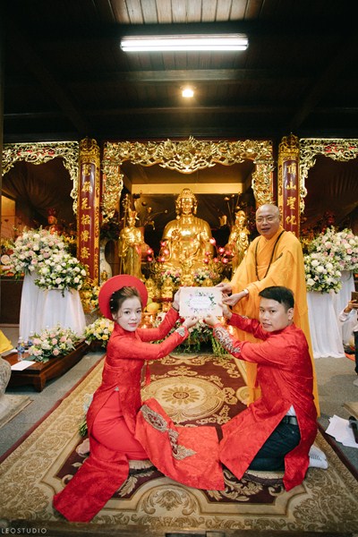 Trước sự gia hộ của mười phương Chư Phật và sự chứng minh của Chư tôn đức Tăng Ni, tân lang và tân nương đã làm lễ tạ ơn Tam Bảo, lễ dâng trà tri ân công sinh thành dưỡng dục của hai đấng sinh thành. Đồng thời, để thể hiện sự kính trọng, sự bình đẳng và sự tôn kính lẫn nhau khi đã nên vợ, thành chống, đôi bạn trẻ đã lễ lạy nhau thông qua nghi lễ “ Lễ Bình Đẳng”.