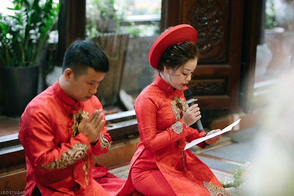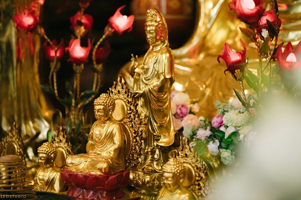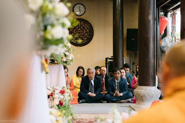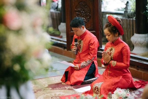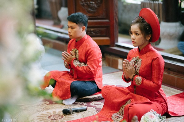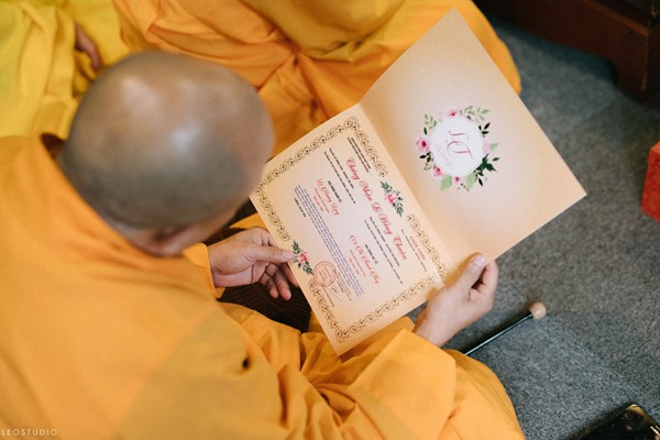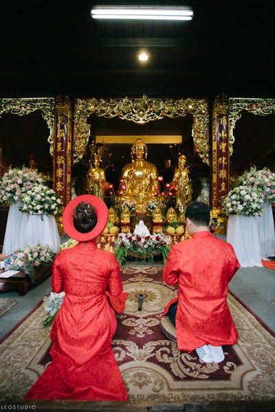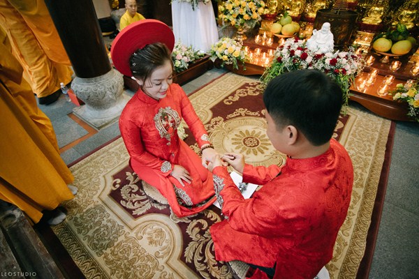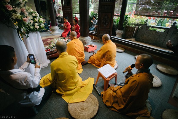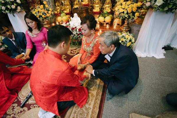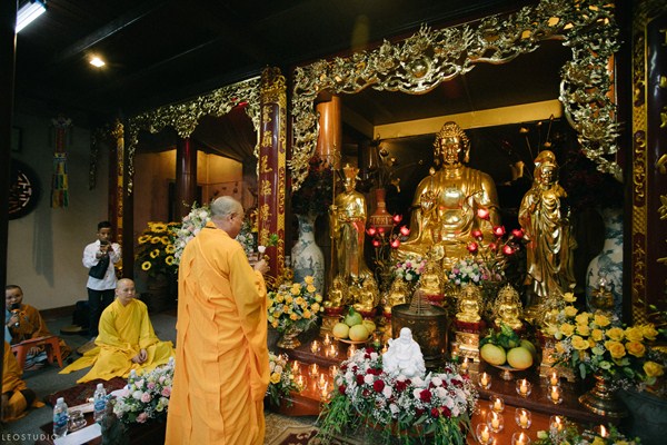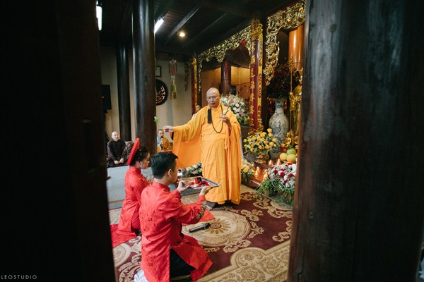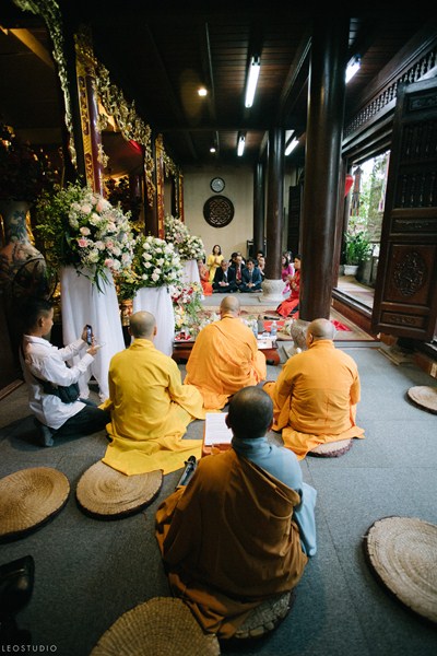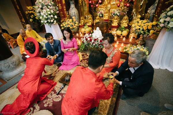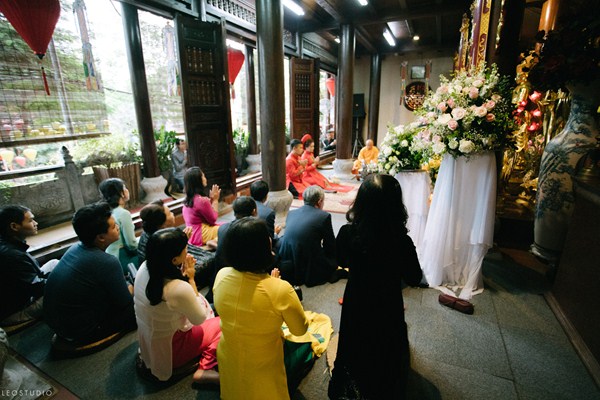 Trước sự gia hộ của mười phương Chư Phật và sự chứng minh của Chư tôn đức Tăng Ni, tân lang và tân nương đã làm lễ tạ ơn Tam Bảo, lễ dâng trà tri ân công sinh thành dưỡng dục của hai đấng sinh thành. Đồng thời, để thể hiện sự kính trọng, sự bình đẳng và sự tôn kính lẫn nhau khi đã nên vợ, thành chống, đôi bạn trẻ đã lễ lạy nhau thông qua nghi lễ “ Lễ Bình Đẳng”.