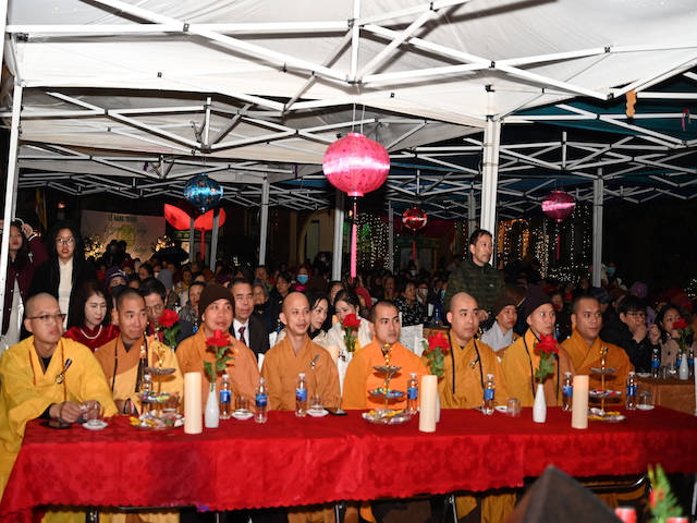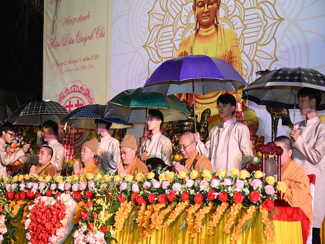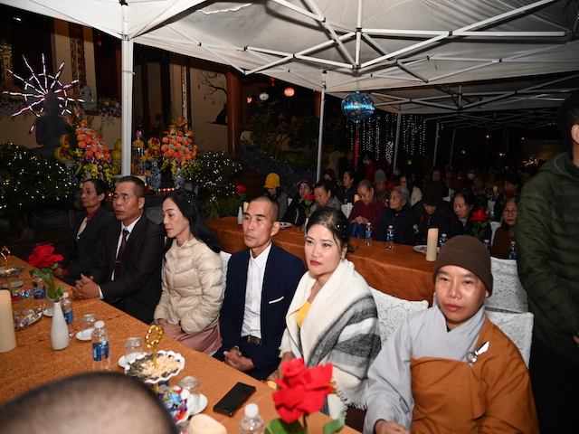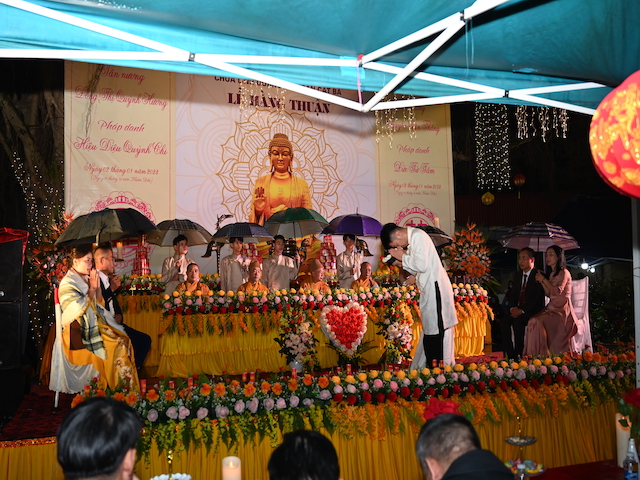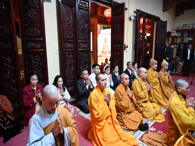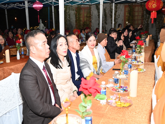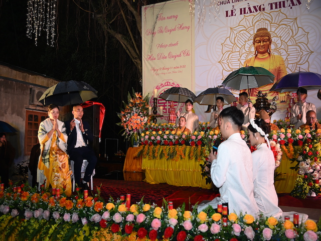Quang lâm tham dự và chứng minh buổi lễ có sự hiện diện của Hòa thượng: Thích Thanh Giác – Phó trưởng Ban thường trực Ban trị sự GHPGVN thành phố Hải Phòng; Thượng toạ: Thích Tục Khang – Uỷ viên Hội đồng trị sự GHPGVN, Phó trưởng Ban thường trực Ban trị sự GHPGVN thành phố Hải Phòng, trưởng Ban trị sự GHPGVN huyện Cát Hải, trưởng Ban tổ chức buổi lễ, trụ trì chùa Linh Quang, thị trấn Cát Bà, Thượng toạ: Thích Bản Điền – Uỷ viên thường trực, phó chánh văn phòng BTS GHPGVN thành phố Hải Phòng, trưởng ban Hướng dẫn Phật tử GHPGVN thành phố, trưởng Ban trị sự GHPGVN huyện An Lão, chư tôn đức Tăng Ni trong và ngoài thành phố Hải Phòng, cùng đại diện hai bên gia đình nội ngoại, bạn bè, thân quyến của đôi tân lang, tân nương và quý Phật tử chùa Linh Quang, chùa Hưng Long, phường Trại Chuối, quận Hồng Bàng, Hải Phòng.