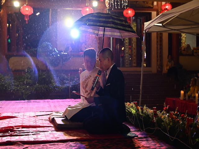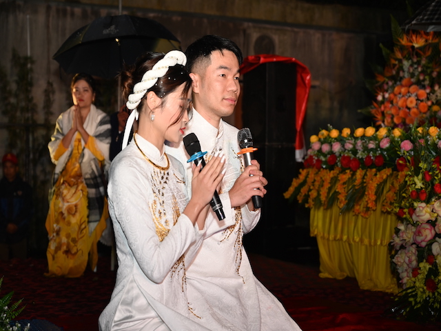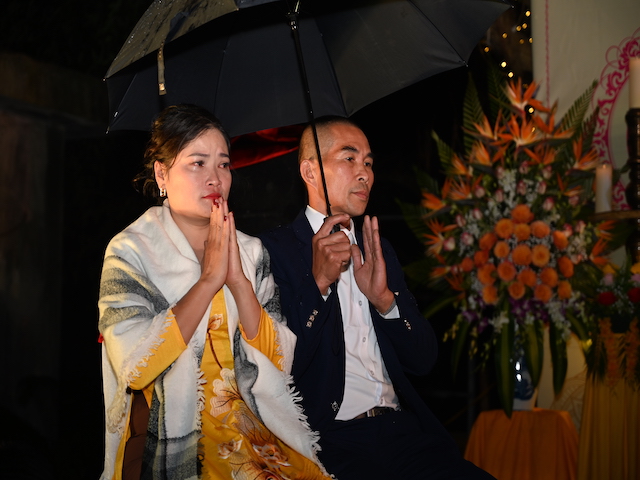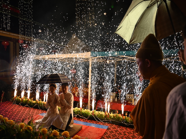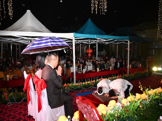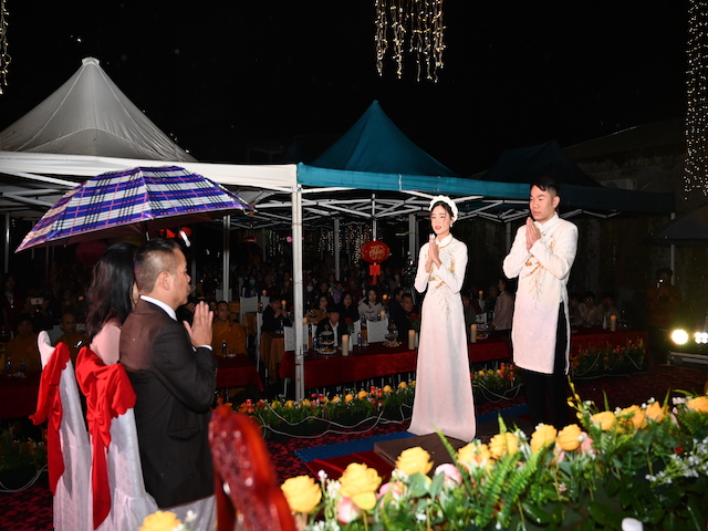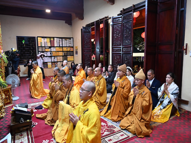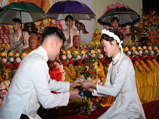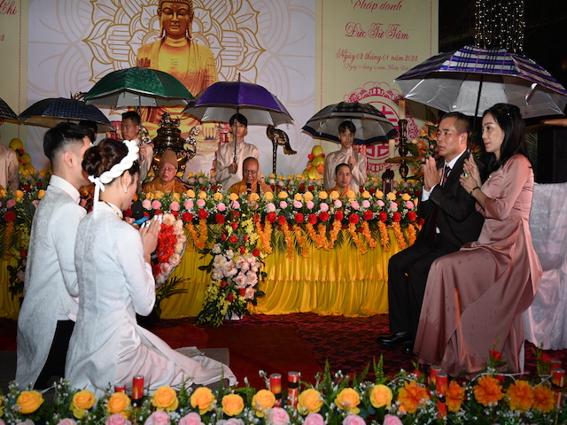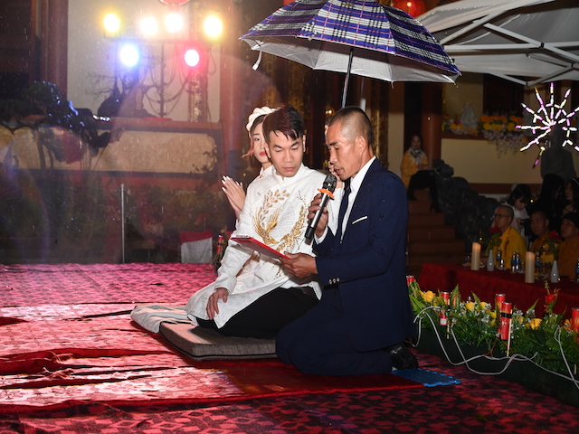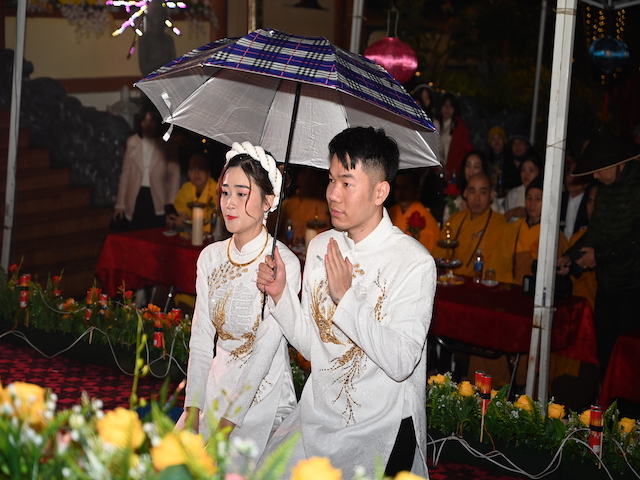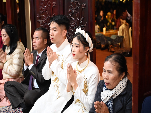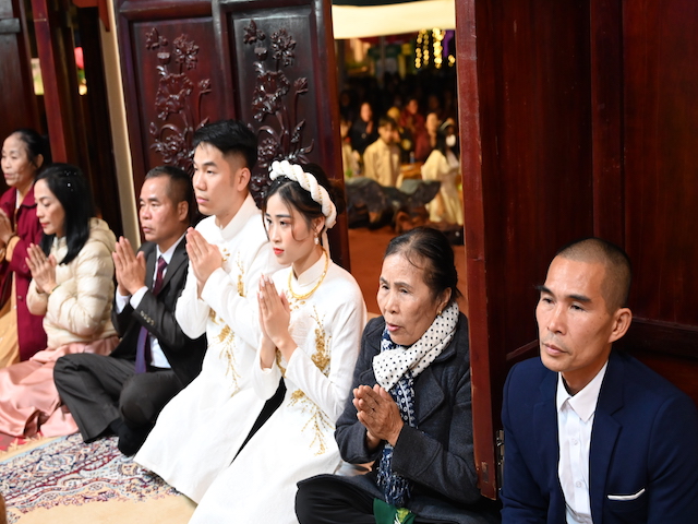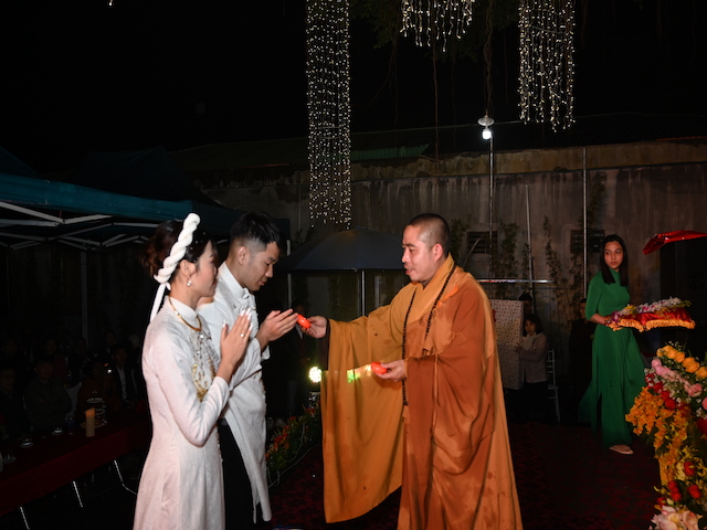 Tân lang và tân nương đỉnh lễ chư Tăng