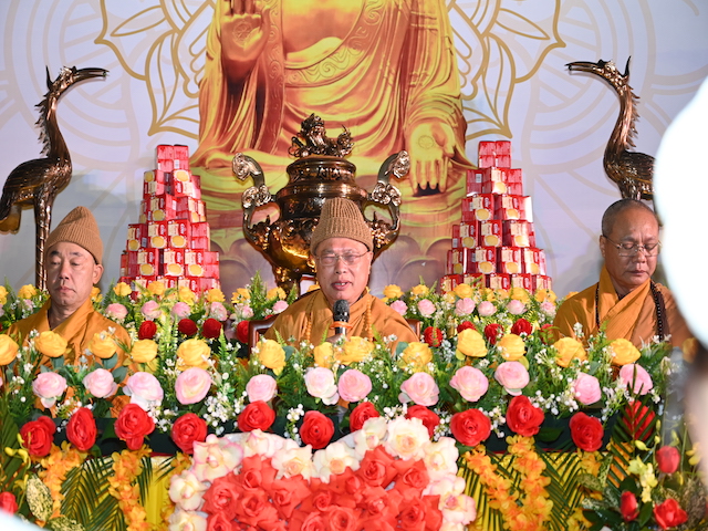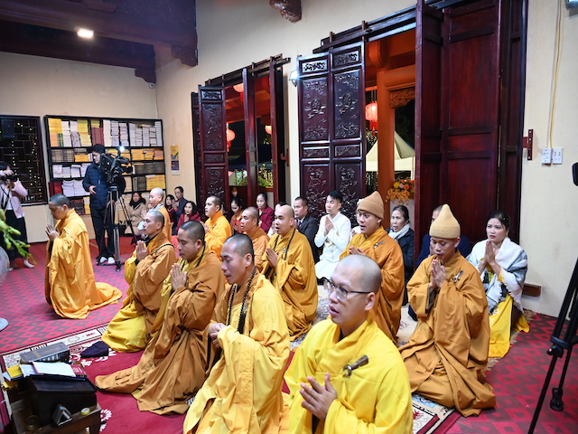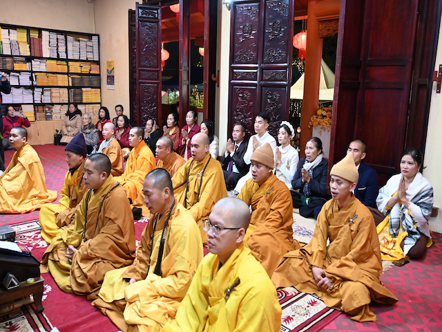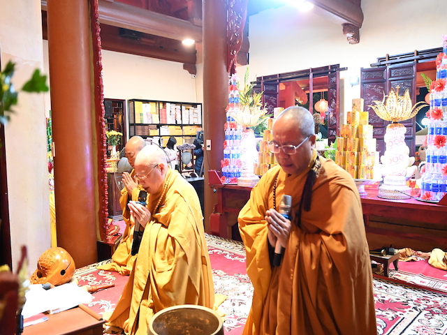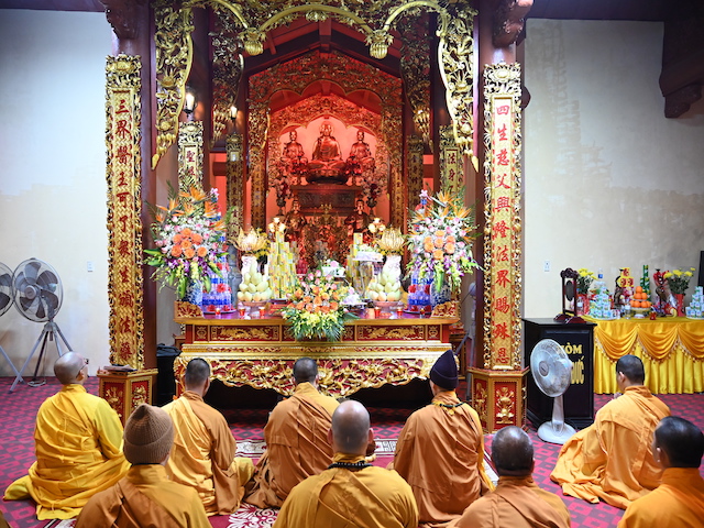 Chư tôn đức cử hành nghi lễ tâm linh tại chính điện chùa Linh Quang
