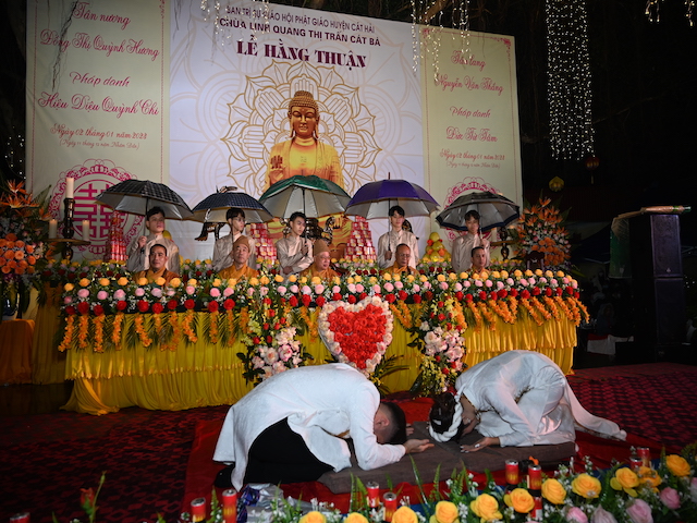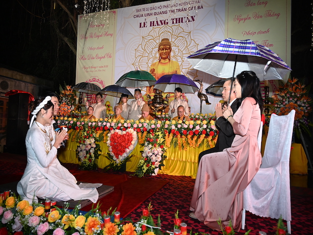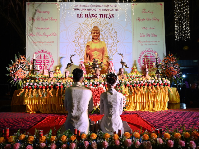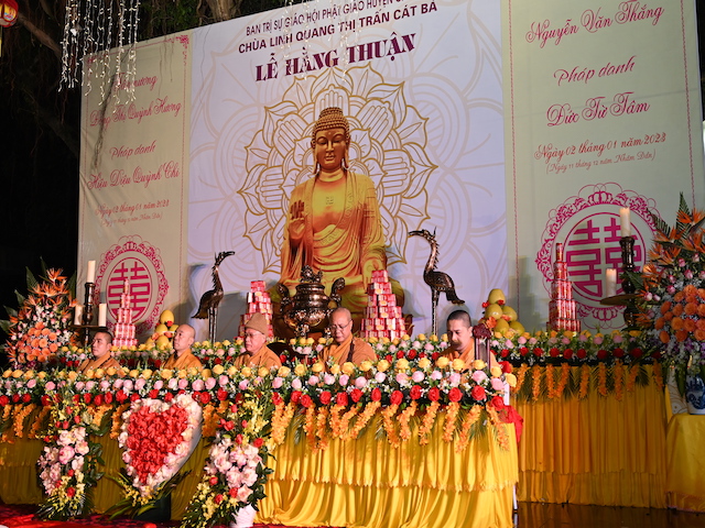 Tối qua, ngày 02 tháng 01 năm 2023 ( nhằm ngày 11 tháng chạp năm Nhâm Dần) tại chùa Linh Quang, thị trấn Cát Bà, huyện Cát Hải, thành phố Hải Phòng đã hoan hỷ diễn ra lễ Hằng thuận của đôi bạn trẻ, Tân lang: Nguyễn Văn Thắng (Pháp danh: Đức Từ Tâm) và Tân nương: Đồng Thị Quỳnh Hương ( Pháp danh: Hiệu Diệu Quỳnh Chi)
