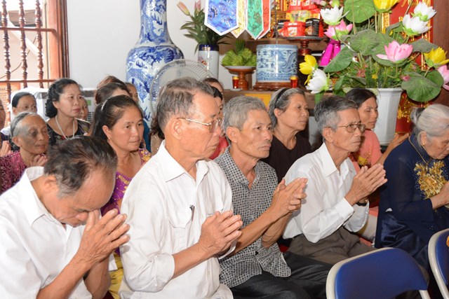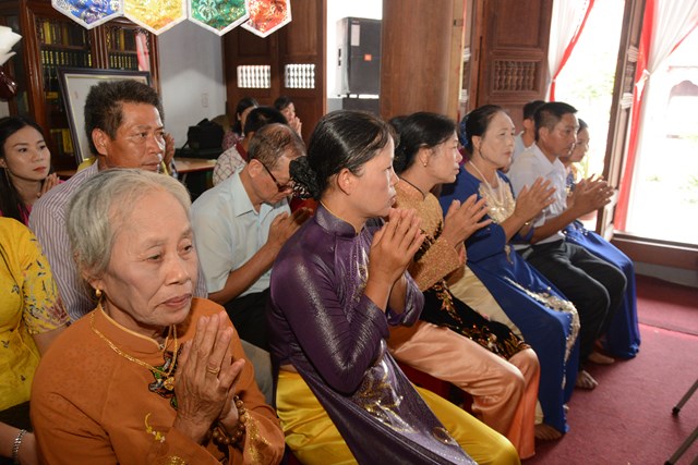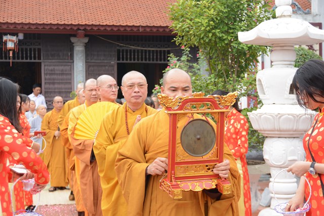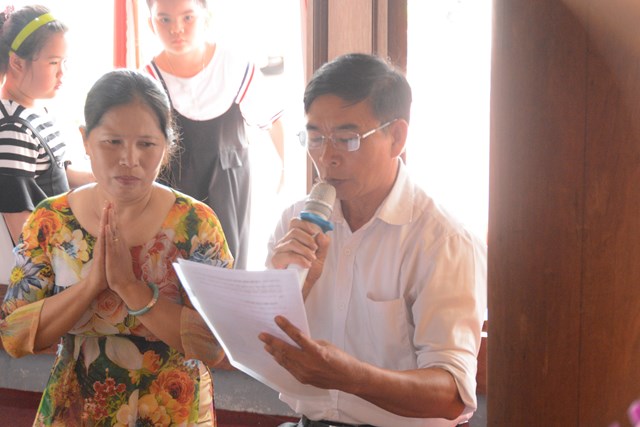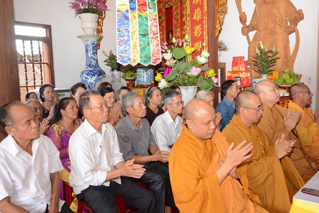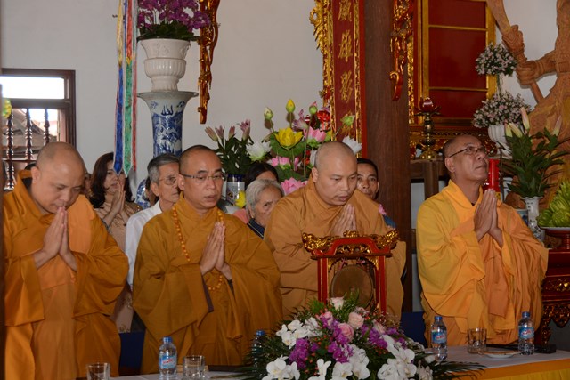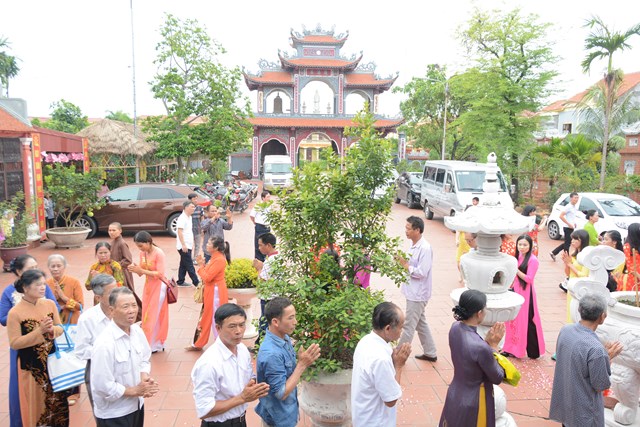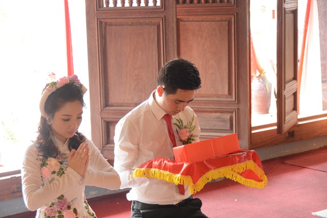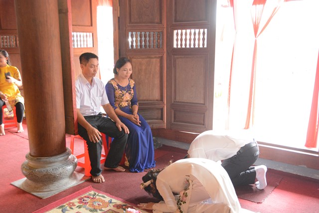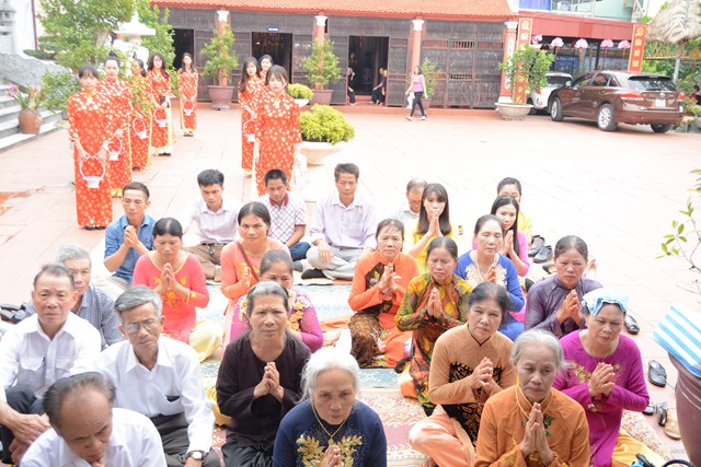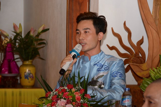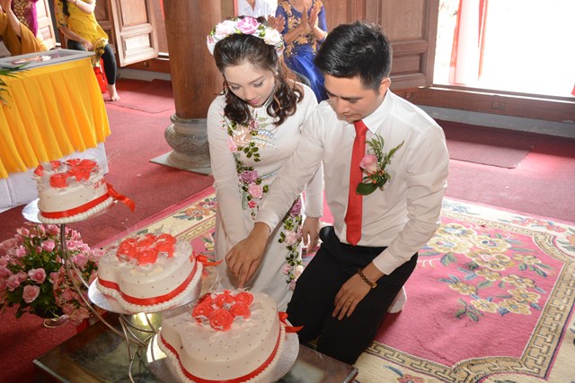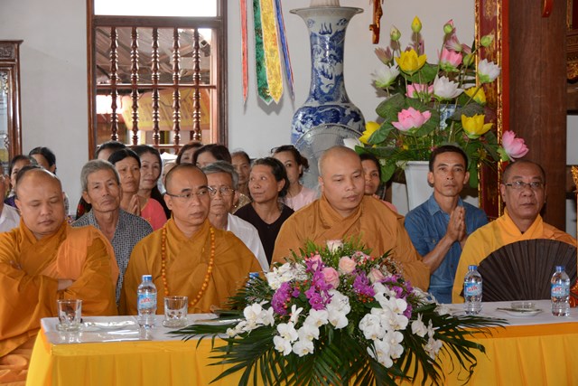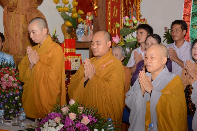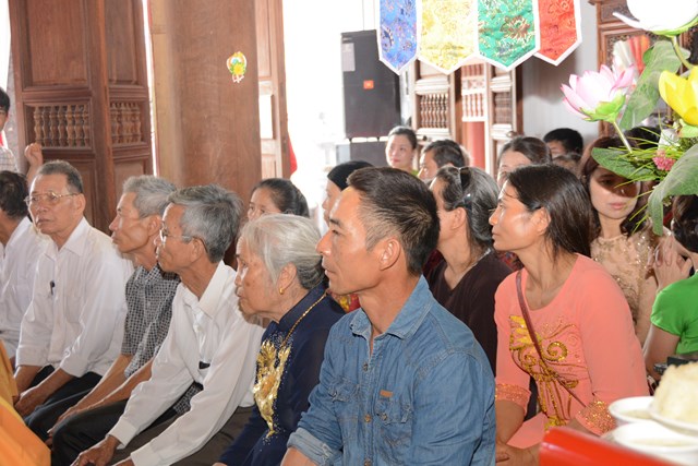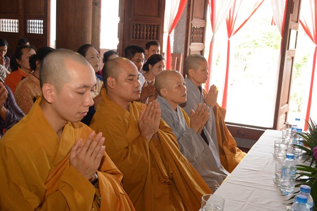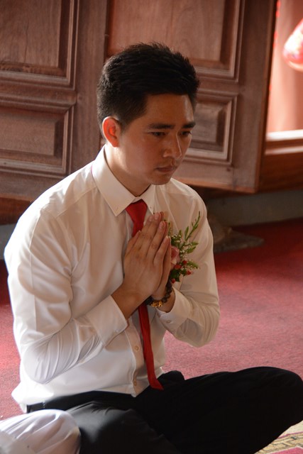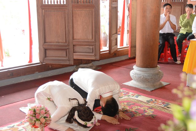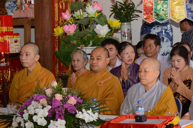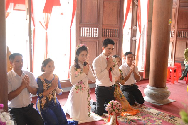 Tiếp đó, thượng tọa chứng minh đã cử hành lễ Quy y Tam Bảo và truyền thụ Tam quy, ngũ giới cho đôi bạn trẻ trước sự chứng minh của chư tôn đức Tăng Ni và sự tham dự của hai bên gia đình cùng các Phật tử, nhân dân địa phương đã về tham dự buổi lễ. Và từ đây, đôi bạn trẻ Lê Văn Hợp và Bùi Thị Ngọc chính thức trở thành những người Phật tử, những người con của Đức Phật, nguyện tu học và thực hành theo giáo lý mà Đức Phật đã dạy, để hướng tới một cuộc sống an lạc và hạnh phúc.