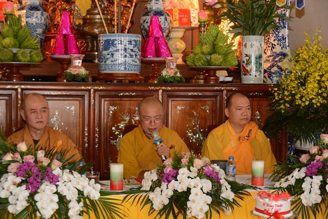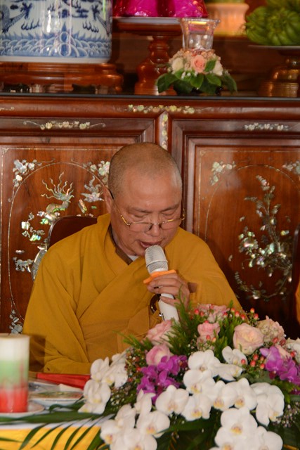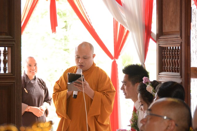 Tại buổi lễ, đôi tân lang, tân nương đã chăm chú, thành kính lắng nghe TT. Thích Thanh Giác – Chứng minh tối cao của buổi lễ giảng giải về đạo nghĩa vợ chồng được đức Phật đã dạy trong kinh Thiện Sinh và kinh Sáu Phương. Nội dung chính của kinh nói lên bổn phận của của người vợ đối với chồng và gia đình bên chồng. Trong kinh, Đức Phật cũng đã khuyên người phụ nữ những việc gì nên làm và những việc gì không nên làm. Tiếp đó, thượng tọa chứng minh đã giảng cho tân lang hiểu được bổn phận của mình đối với vợ, cũng như gia đình bên vợ; bổn phận của cha mẹ đối với con cái sau này và con cái đối với cha mẹ. Thượng tọa còn sách tấn đôi tân lang, tân nương phải sống trọn vẹn bổn phận làm vợ và làm chồng, làm dâu hiển, rể thảo, cùng xây dựng hạnh phúc gia đình.
