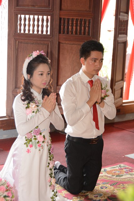 Dưới sự gia hộ của mười phương Chư Phật và sự chứng minh của đông đảo chư tôn đức Tăng Ni, đôi tân lang, tân nương đã làm lễ tạ ơn Tam Bảo, lễ tri ân công sinh thành dưỡng dục để báo đáp thâm ân của cha mẹ. Bởi Đức Phật đã dạy, cha mẹ hiện tiền như Phật tại thế nên tôn kính cha mẹ cũng là tôn kính Phật, tôn kính Tam Bảo, hành động này nhằm khơi dậy lòng hiếu hạnh của các bạn trẻ đối với hai vị Phật sống đang hiện hữu hàng ngày.