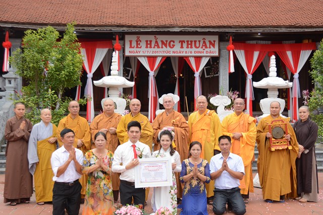 Quang lâm và chứng minh buổi lễ Hằng thuận có sự hiện diện của TT. Thích Thanh Giác – Phó trưởng Ban thường trực Ban hoằng pháp TƯ GHPGVN, phó trưởng Ban thường trực BTS GHPGVN thành phố Hải Phòng, TT. Thích Nguyên Bình – Trưởng Ban văn hóa GHPGVN thành phố Hải Phòng, Ni Sư Thích Đàm Chi – Ủy viên BTS GHPGVN thành phố Hải Phòng, Sư thầy Thích Hạnh Như – trụ trì chùa Linh Ứng, trưởng BTC buổi lễ, cùng hai bên gia đình nội ngoại, bạn bè, thân bằng, quyến thuộc của đôi tân lang, tân nương và các Phật tử đang sinh hoạt tại đạo tràng chùa Linh Ứng.