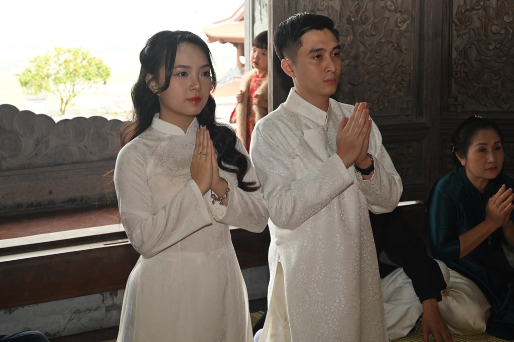 Tân Lang và Tân Nương thành kính phát nguyện Quy Y Tam Bảo tại chính điện chùa Long Hoa