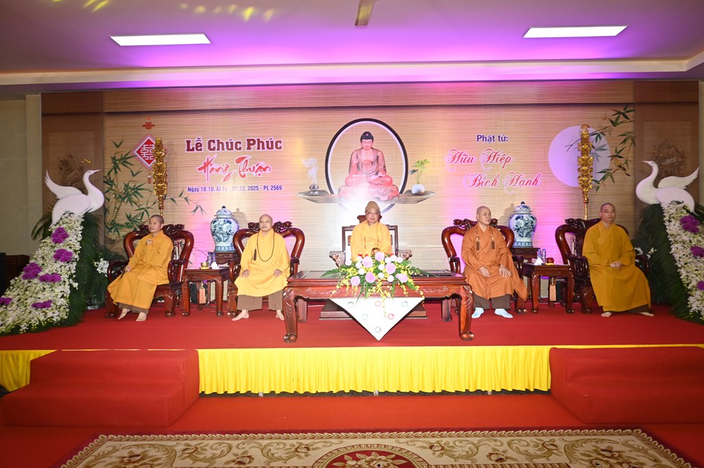 Quang lâm chứng minh và chúc phúc cho đôi bạn trẻ có sự hiện diện của Hòa thượng Thích Thanh Giác – Trụ trì chùa Long Hoa, trưởng BTC buổi lễ; Thượng tọa Thích Giác Sơn – Ủy viên BTS GHPGVN thành phố Hải Phòng, chư tăng chùa Phổ Chiếu; Thượng tọa Thích Thanh Quang – Chánh thư ký, Phó Ban trị sự GHPGVN tỉnh Hưng Yên, cùng chư tôn đức Tăng Ni trụ trì các chùa trong và ngoài thành phố Hải Phòng.