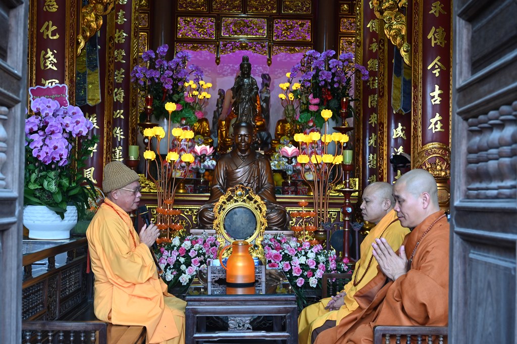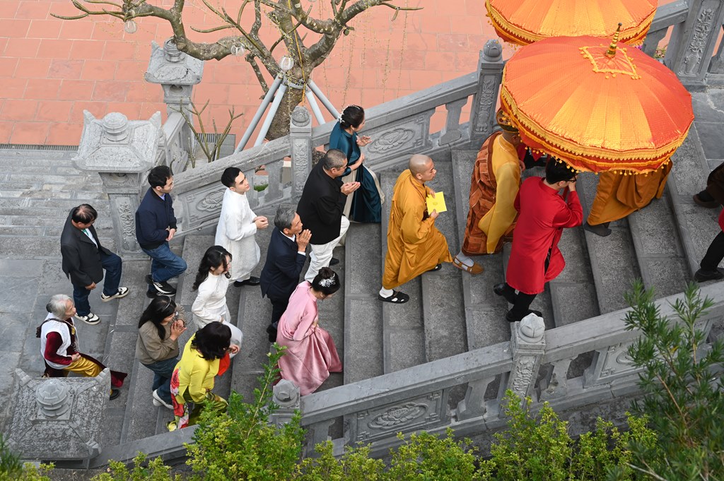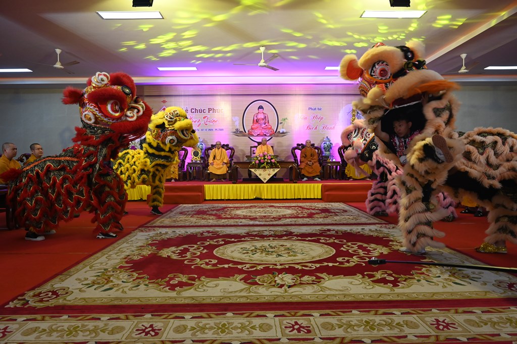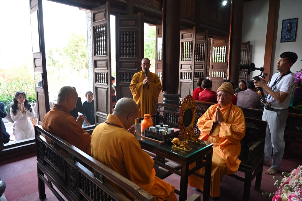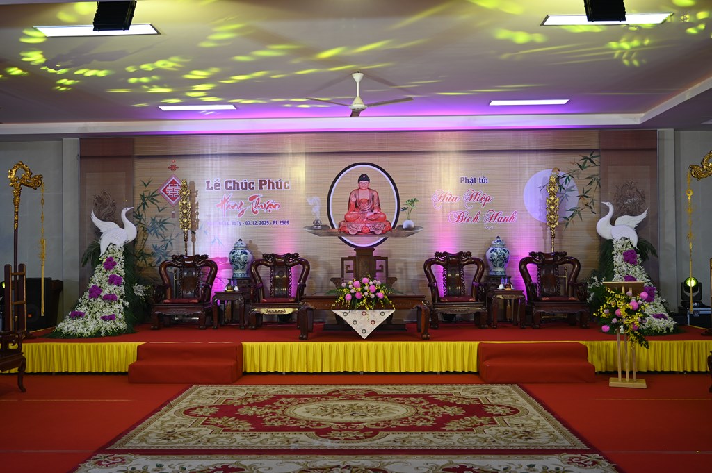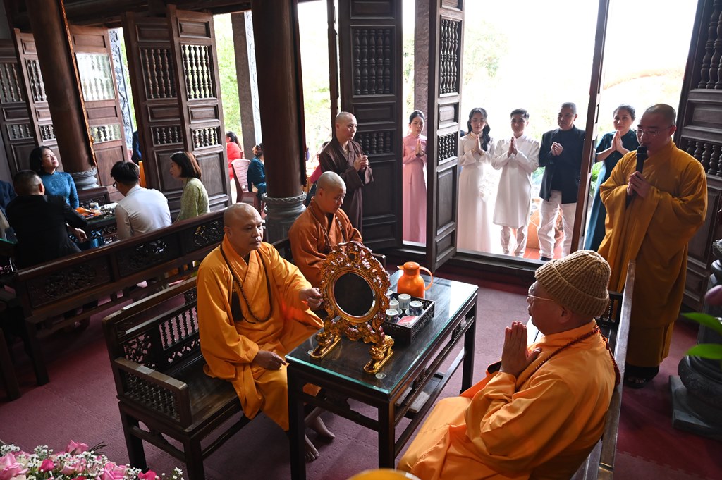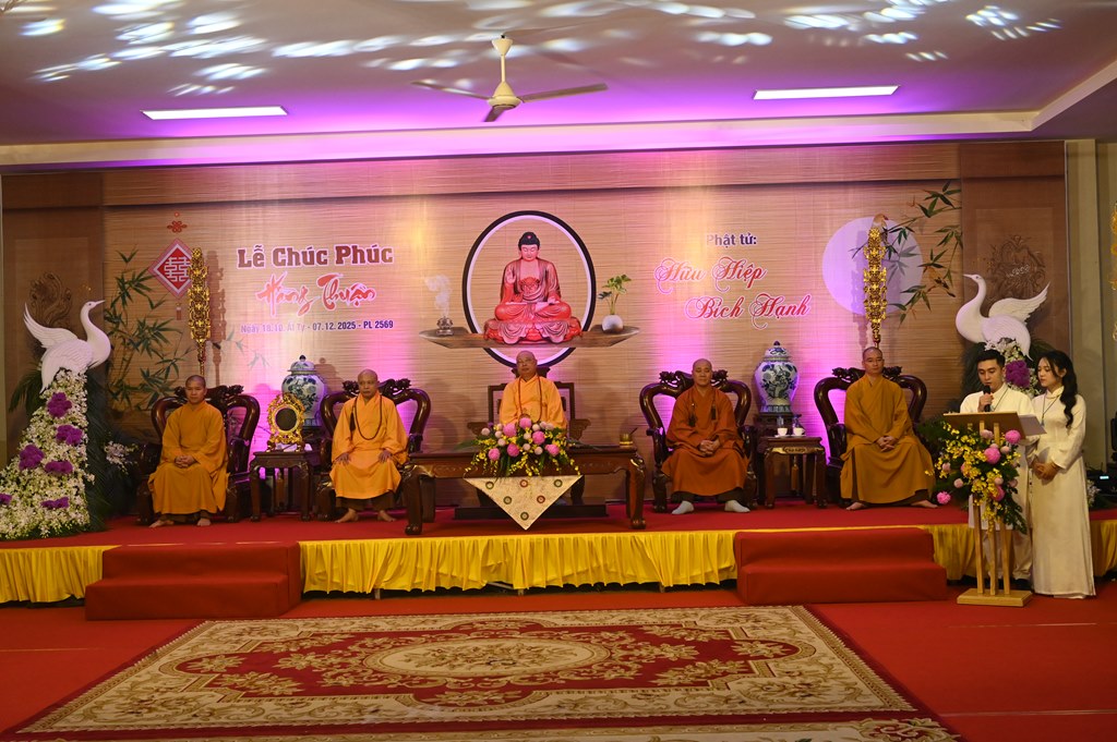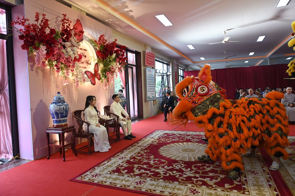 Quang lâm chứng minh và chúc phúc cho đôi bạn trẻ có sự hiện diện của Hòa thượng Thích Thanh Giác – Trụ trì chùa Long Hoa, trưởng BTC buổi lễ; Thượng tọa Thích Giác Sơn – Ủy viên BTS GHPGVN thành phố Hải Phòng, chư tăng chùa Phổ Chiếu; Thượng tọa Thích Thanh Quang – Chánh thư ký, Phó Ban trị sự GHPGVN tỉnh Hưng Yên, cùng chư tôn đức Tăng Ni trụ trì các chùa trong và ngoài thành phố Hải Phòng.