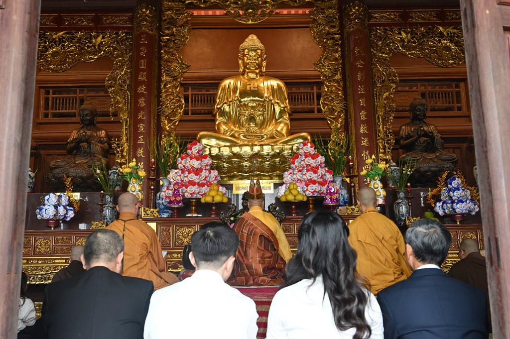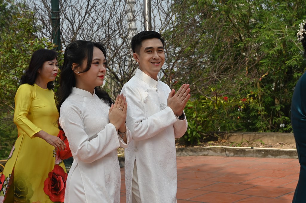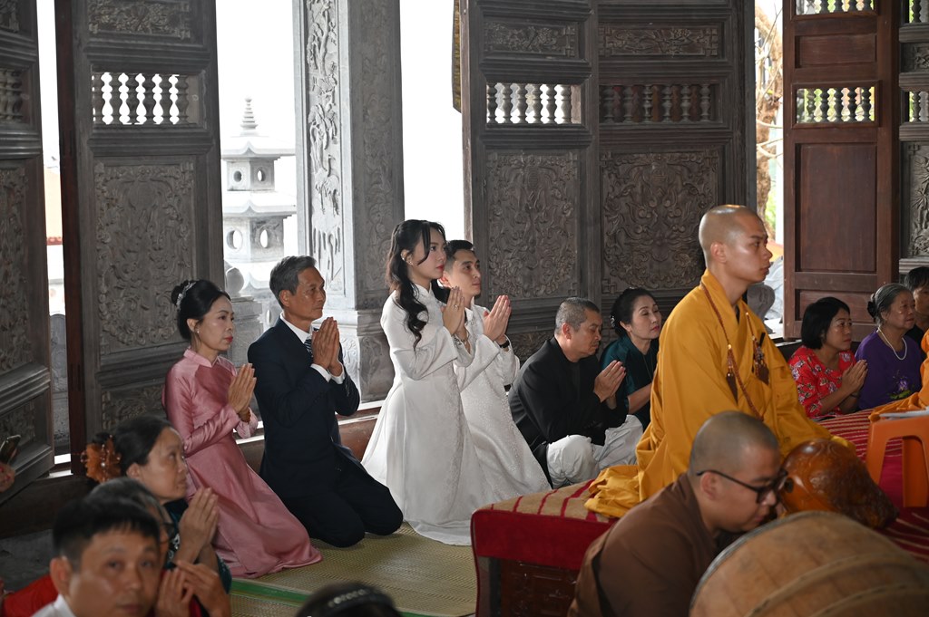 Tân Lang và Tân Nương thành kính phát nguyện Quy Y Tam Bảo tại chính điện chùa Long Hoa