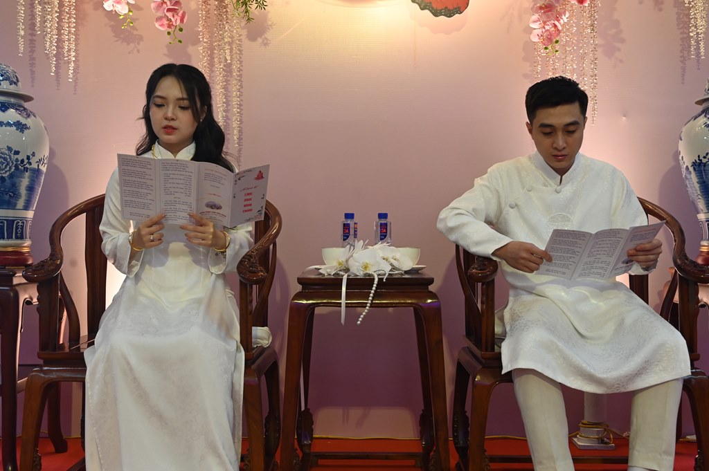 Đôi bạn trẻ dâng lời phát nguyện tại buổi lễ hằng thuận
