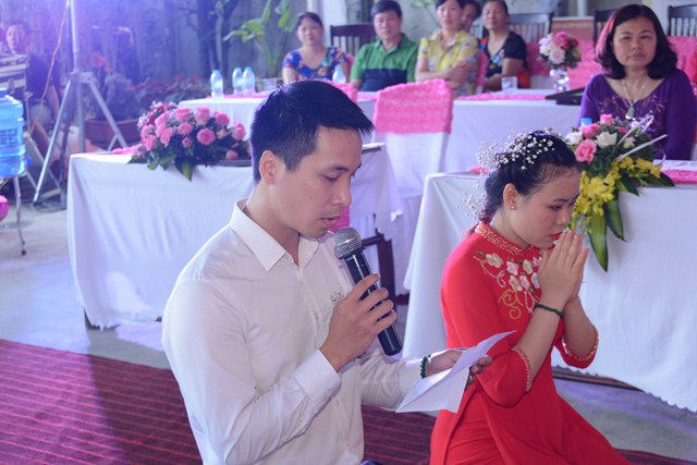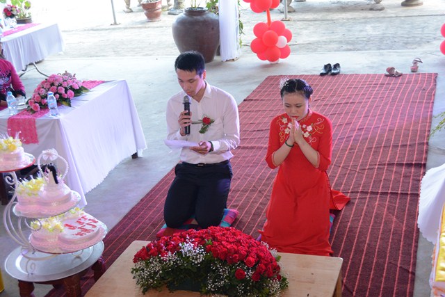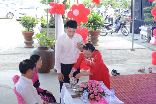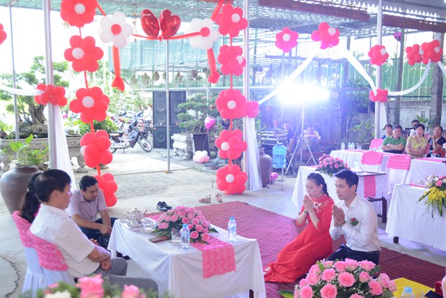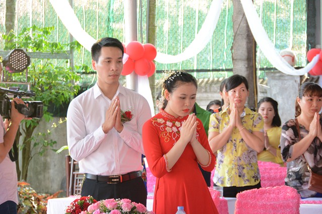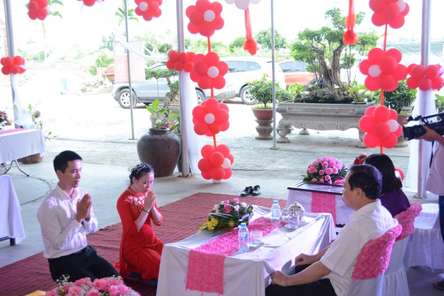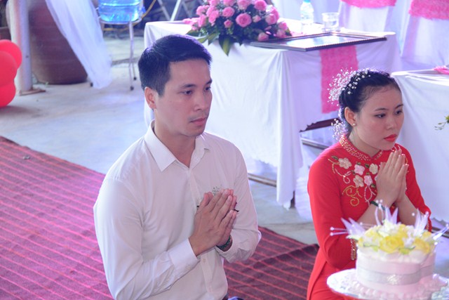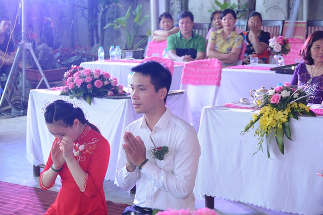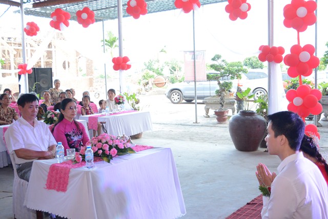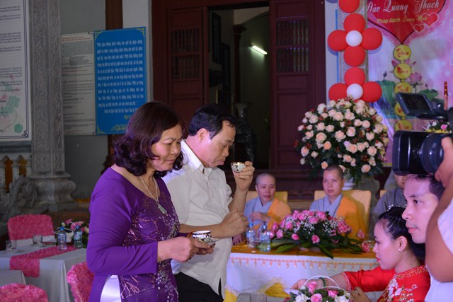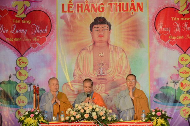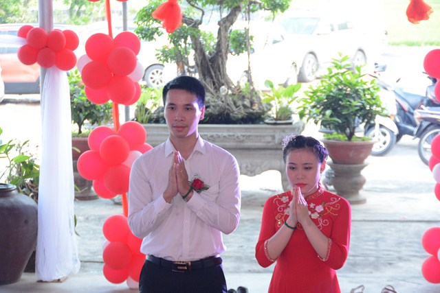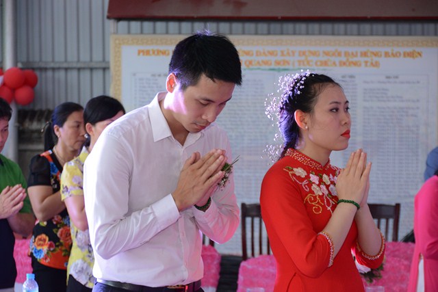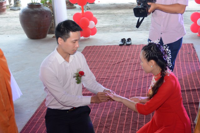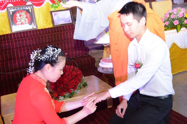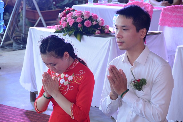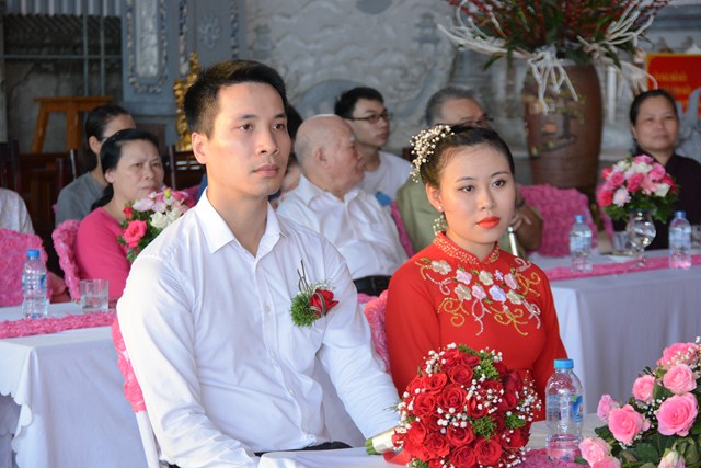 Dưới sự gia hộ của mười phương Chư Phật và sự chứng minh của Chư tôn đức Ni, đôi tân lang, tân nương đã làm lễ tạ ơn Tam Bảo, lễ tri ân công sinh thành dưỡng dục, lễ mời trà để báo đáp thâm ân của hai đấng song thân. Đồng thời, để thể hiện sự kính trọng, bình đẳng, tôn kính lẫn nhau trên tinh thần Từ Bi, Vô Ngã, Vị Tha của Nhà Phật, đôi bạn trẻ đã lễ lạy nhau thông qua nghi lễ bình đẳng.
