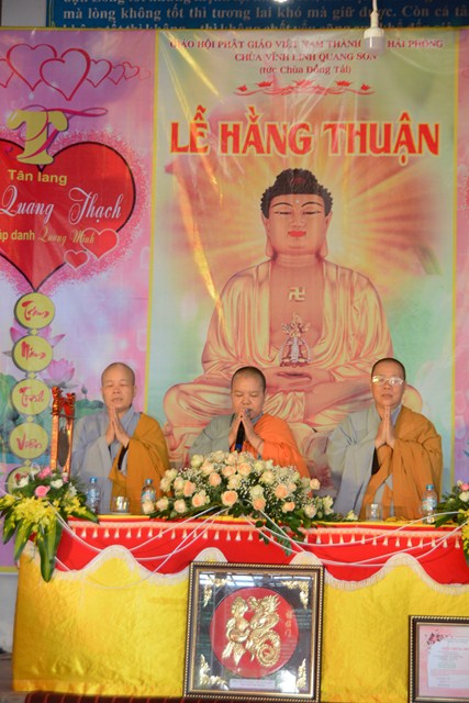 Quang lâm và chứng minh buổi lễ Hằng thuận có sự hiện diện của Ni Sư Thích Tâm Chính – Ủy viên Ban từ thiện xã hội và ban hoằng Pháp TƯ GHPGVN, Ủy viên thường trực kiêm trưởng Ban từ thiện xã hội GHPGVN thành phố Hải Phòng, trưởng Ban trị sự quận Hải An, Ni Sư. Thích Đàm Lương – Ủy viên thường trực BTS GHPGVN thành phố Hải Phòng, phó trưởng BTS GHPGVN quận Kiến An, Ni Sư Thích Đàm Chi – Ủy viên BTS GHPGVN thành phố Hải Phòng, trụ trì chùa Lạng Côn, Sư thầy Thích Diệu Hướng – Ủy viên BTS, trưởng ban Hoằng pháp GHPGVN quận Kiến An, trụ trì chùa Đồng Tải, trưởng BTC buổi lễ, cùng hai bên gia đình nội ngoại, bạn bè của đôi tân lang, tân nương và các Phật tử đang sinh hoạt tại đạo tràng chùa Đồng Tải.