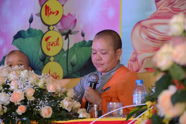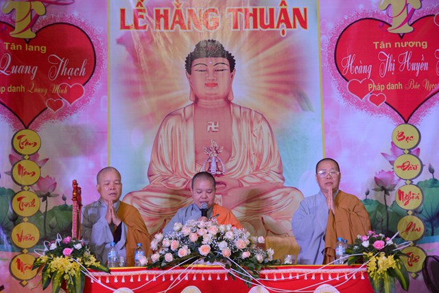 Tại buổi lễ, đôi tân lang, tân nương đã được lắng nghe Ni Sư Thích Tâm Chính giảng giải về đạo nghĩa vợ chồng mà đức Phật đã dạy trong kinh Thiện Sinh và kinh Sáu Phương. bổn phận của của người vợ đối với chồng và gia đình bên chồng. Trong kinh, Đức Phật đã khuyên người phụ nữ những việc gì nên làm và việc gì không nên làm, tiếp đó Ni Sư đã giảng cho tân lang hiểu được bổn phận của mình đối với vợ, cũng như gia đình bên vợ, bổn phận của cha mẹ đối với con cái và con cái đối với cha mẹ. Ni sư còn khuyến tấn đôi tân lang, tân nương phải sống trọn vẹn bổn phận làm vợ và làm chồng, làm dân hiển, rể thảo, cùng xây dựng hạnh phúc gia đình.
