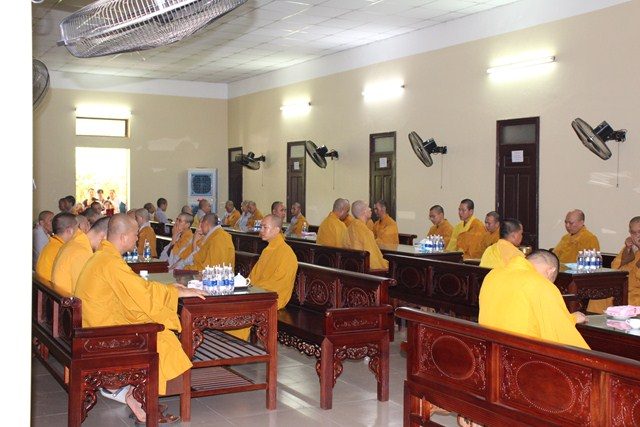 Đúng 8h00’, tất cả các hành giả an cư tại cơ sở 3 đã vân tập về chính điện chùa Thắng Phúc để lễ Phật cầu gia bị. Tiếp đó, chư tôn đức tăng ni đã vân tập tại giảng đường Tổ đình Thắng Phúc để tham dự lễ khai Pháp PL. 2563 – DL. 2019. Đại vì chư tôn đức tăng ni thực hiện cấm túc an cư tại hạ trường cơ sở 3, Đại đức Thích Quảng Minh – Chánh Duy Na hạ trường đã lên tác bạch cầu Pháp.