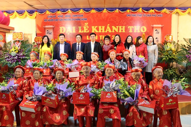 Được biết trước khi diễn ra buổi lễ, chư tôn đức Tăng chùa Phổ Chiếu, cùng các cụ và con cháu đã tụng kinh cầu nguyện chư Phật gia hộ cho các cụ được mạnh khỏe bên con cháu.