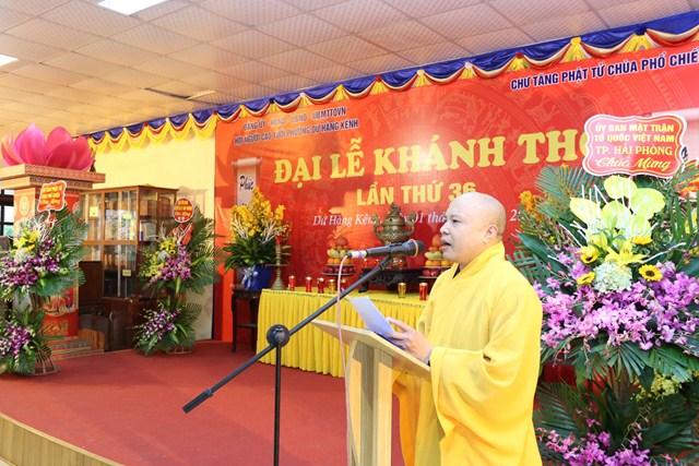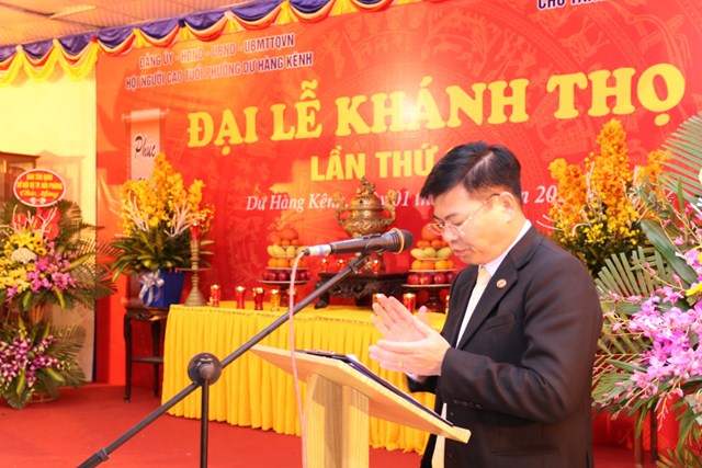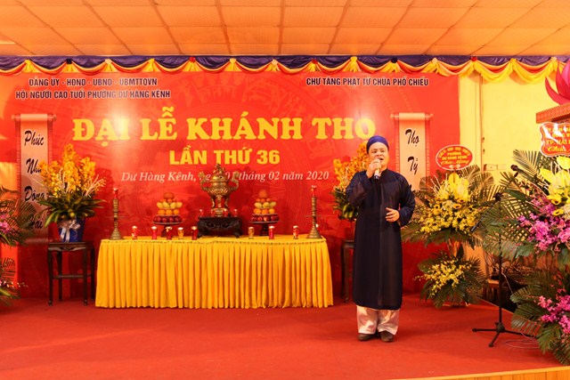 Thay mặt cho BTC Đại lễ, ông: ông: Võ Tiến Dũng – Phó Bí thư Đảng uỷ, Chủ tịch UBND phường đã lên phát biểu khai mạc Đại Lễ khánh thọ lần thứ 36. Theo đó, nhằm phát huy truyền thống “ Uống nước nhớ nguồn” của Dân tộc Việt Nam, hàng năm mỗi khi tết đến, xuân về, Đảng ủy, UBND, UB MTTQVN phường Dư Hàng Kênh lại tổ chức mừng thọ cho các cụ hội viên người cao tuổi nằm trong độ tuổi: 70, 75, 80, và trên 90 tuổi, nhằm động viên, khích lệ tinh thần của người cao tuổi, đồng thời ghi nhận công lao của các cụ đối với gia đình và xã hội.