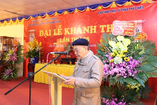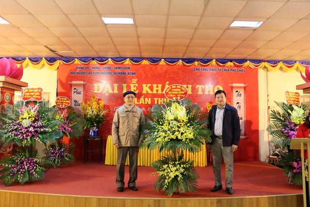 Quang lâm tham dự buổi lễ có sự hiện diện của HT. Thích Thanh Giác – Phó trưởng Ban thường trực Ban hoằng Pháp TƯ GHPGVN, phó trưởng Ban thường trực BTS GHPGVN Tp. Hải Phòng, trụ trì chùa Phổ Chiếu, Thượng toạ Thích Giác Sơn – Phó trưởng BTS GHPGVN quận Lê Chân, cùng Chư tôn đức Tăng trong chốn trụ xứ, đông đảo Phật tử, con cháu các cụ cao tuổi, đại diện 369 người cao tuổi có tuổi tròn 70, 75, 80 và trên 90 tuổi hiện đang sinh sống tại phường Dư Hàng Kênh, quận Lê Chân, thành phố Hải Phòng.