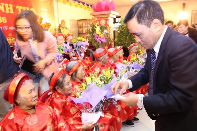 Nhân dịp này, TT. Thích Giác Sơn và các cấp chính quyền địa phương đã trao quà và hoa chúc thọ các cụ nhân dịp đầu xuân Canh Tý – 2020, chúc các cụ thật nhiều sức khỏe, sống vui, sống khoẻ, sống có ích để nuôi dạy con cháu nên người.