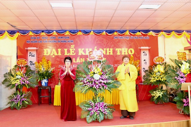 Quang lâm tham dự buổi lễ có sự hiện diện của HT. Thích Thanh Giác – Phó trưởng Ban thường trực Ban hoằng Pháp TƯ GHPGVN, phó trưởng Ban thường trực BTS GHPGVN Tp. Hải Phòng, trụ trì chùa Phổ Chiếu, Thượng toạ Thích Giác Sơn – Phó trưởng BTS GHPGVN quận Lê Chân, cùng Chư tôn đức Tăng trong chốn trụ xứ, đông đảo Phật tử, con cháu các cụ cao tuổi, đại diện 369 người cao tuổi có tuổi tròn 70, 75, 80 và trên 90 tuổi hiện đang sinh sống tại phường Dư Hàng Kênh, quận Lê Chân, thành phố Hải Phòng.