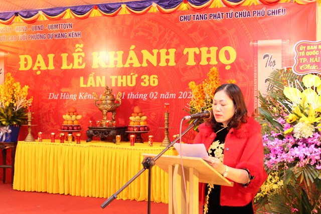 Thay mặt cho BTC Đại lễ, ông: ông: Võ Tiến Dũng – Phó Bí thư Đảng uỷ, Chủ tịch UBND phường đã lên phát biểu khai mạc Đại Lễ khánh thọ lần thứ 36. Theo đó, nhằm phát huy truyền thống “ Uống nước nhớ nguồn” của Dân tộc Việt Nam, hàng năm mỗi khi tết đến, xuân về, Đảng ủy, UBND, UB MTTQVN phường Dư Hàng Kênh lại tổ chức mừng thọ cho các cụ hội viên người cao tuổi nằm trong độ tuổi: 70, 75, 80, và trên 90 tuổi, nhằm động viên, khích lệ tinh thần của người cao tuổi, đồng thời ghi nhận công lao của các cụ đối với gia đình và xã hội.