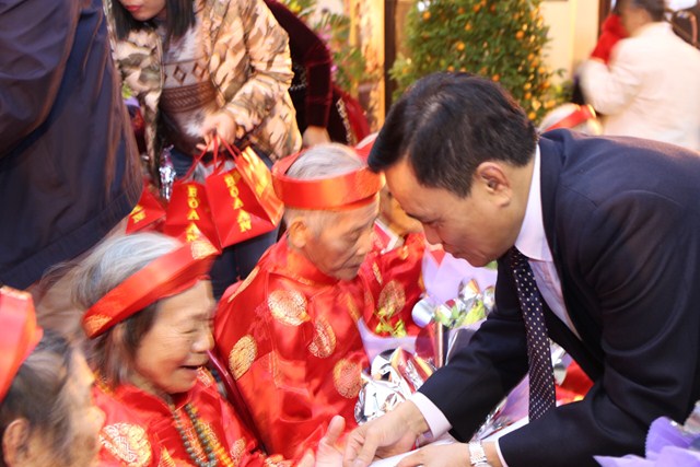 Nhân dịp này, TT. Thích Giác Sơn và các cấp chính quyền địa phương đã trao quà và hoa chúc thọ các cụ nhân dịp đầu xuân Canh Tý – 2020, chúc các cụ thật nhiều sức khỏe, sống vui, sống khoẻ, sống có ích để nuôi dạy con cháu nên người.