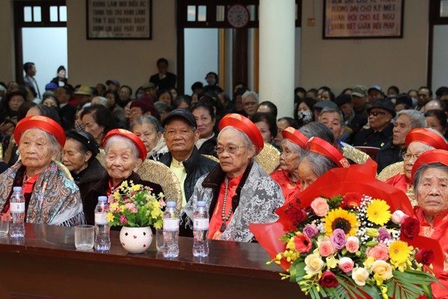 Được biết trước khi diễn ra buổi lễ, chư tôn đức Tăng chùa Phổ Chiếu, cùng các cụ và con cháu đã tụng kinh cầu nguyện chư Phật gia hộ cho các cụ được mạnh khỏe bên con cháu.