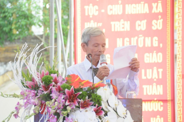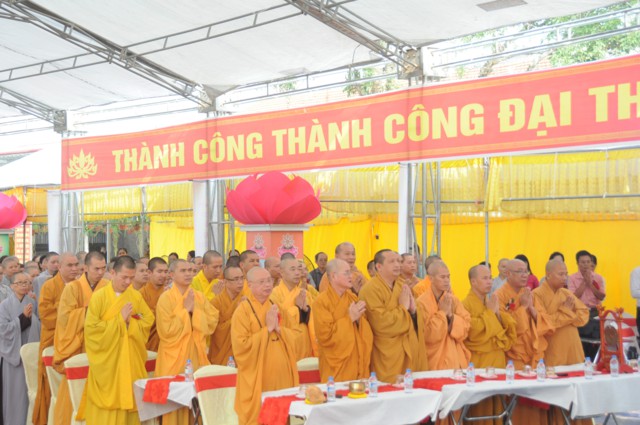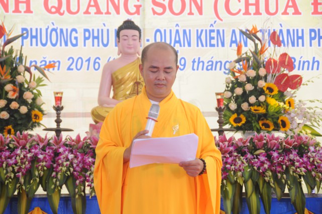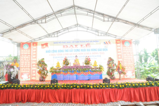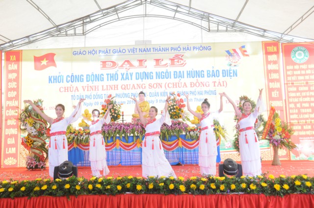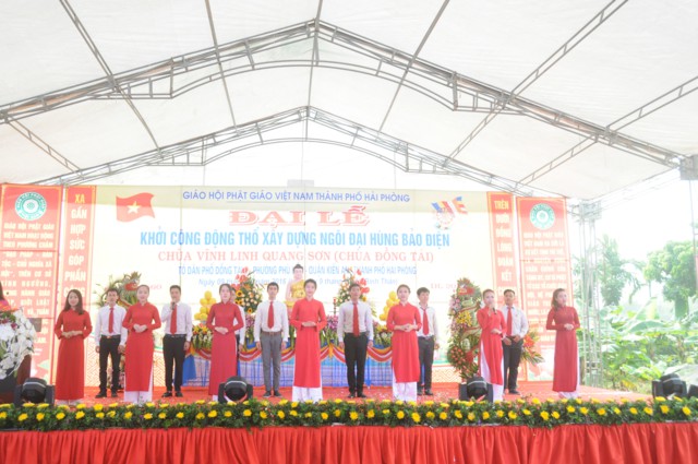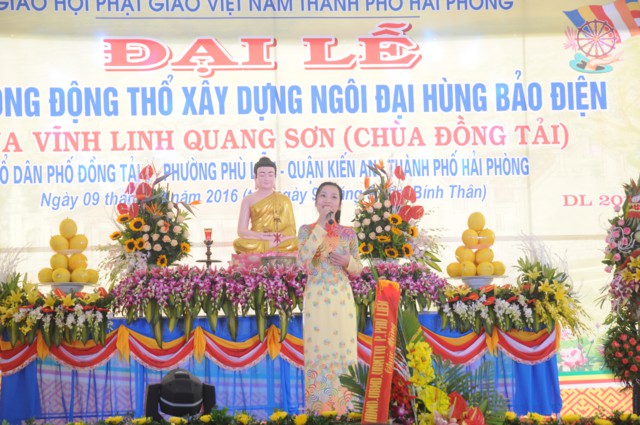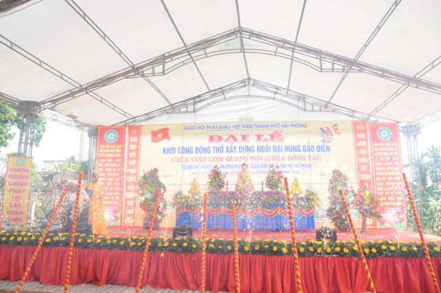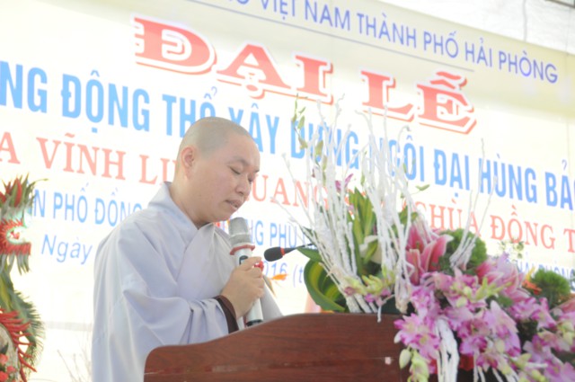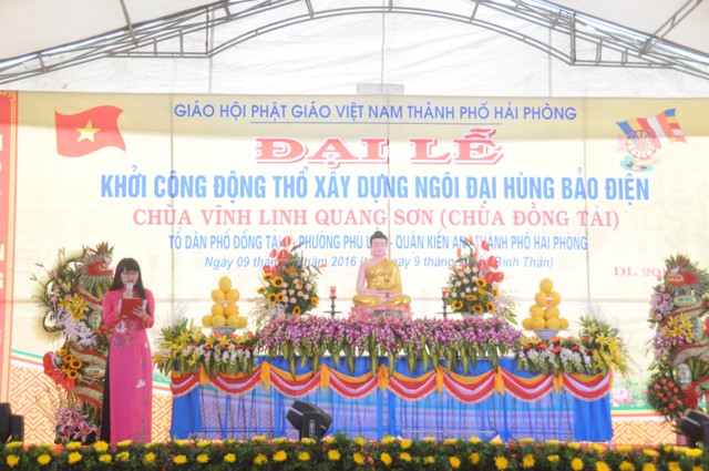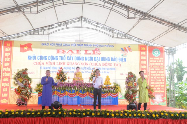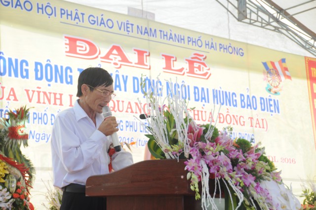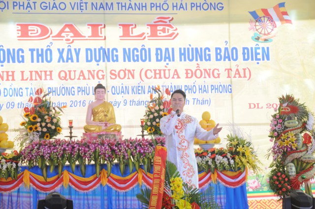 Sau nghi thức niệm hồng danh Đức Phật, thay mặt cho Ban tổ chức, ban kiến thiết xây dựng chùa Đồng Tải, ông: Nguyễn Văn Kiềm – Tổ trưởng tổ dân phố Đồng Tải 1, phường Phù Liễn đã lên phát biểu khai mạc Đại lễ khởi công động thổ trùng tu, xây dựng ngôi Đại Hùng Bảo Điện chùa Vĩnh Linh Quang Sơn ( Chùa Đồng Tải). Chùa Đồng Tải được xây dựng từ nhiều thế kỷ trước, do biến cố thăng trầm của thời gian và lịch sử, các hạng mục kiến trúc của chùa đã bị xuống cấp trầm trọng, chùa bị dột nát, cũ kỹ, không gian chật hẹp, không đủ điều kiện cho các Phật tử về tu học, sinh hoạt tín ngưỡng, văn hóa tâm linh, cũng như nhu cầu về chiêm bái của du khách gần xa, nhân dân bản địa. Được sự cho phép của BTS GHPGVN thành phố Hải Phòng, cũng như được sự quan tâm, giúp đỡ của các cấp chính quyền địa phương, đến nay đã hội đủ duyên lành, thiên thời, địa lợi, nhân hòa, Sư thầy Thích Diệu Hướng – Trụ trì chùa Đồng Tải, cùng chính quyền, Phật tử, nhân dân địa phương long trọng tổ chức Đại lễ khởi công động thổ trùng tu, xây dựng ngôi Đại Hùng Bảo Điện chùa Vĩnh Linh Quang Sơn trong không khí đại hoan hỷ trước sự kiện trọng đại và ý nghĩa này.
