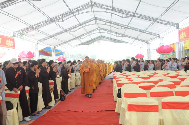 Nhân dịp này, thượng Tọa Thích Thanh Giác – Ủy viên TT BTS GHPGVN, phó trưởng Ban thường trực BTS GHPGVN thành phố Hải Phòng đã ban đạo từ ôn lại lịch sử của ngôi chùa Vĩnh Linh Quang Sơn ( chùa Đồng Tải) qua các thời kỳ. Ngoài ra, thượng tọa chứng minh còn nói lên ý nghĩa, công đức của việc xây dựng chùa, mỗi một ngôi chùa mọc lên sẽ bớt đi 1 địa ngục, một nhà tù nơi trần gian. Vì vậy, việc xây dựng ngôi chùa có một ý nghĩa rất lớn. Ngoài việc xây dựng ngôi chùa bằng vật chất thì chúng ta còn phải xây dựng một ngôi chùa tâm linh ở ngay trong tâm, ngay trong tiềm thức của mỗi chúng ta bằng cách tinh tấn tu học, tìm cầu giác ngộ, giải thoát. Đồng thời thượng tọa cũng kêu gọi các nhà hảo tâm, các mạnh thường quân, các Phật tử gần xa phát tâm công đức xây dựng chùa cả về mặt vật chất lẫn tinh thần để công trình xây dựng sớm được hoàn thiện, đưa vào sử dụng, phục vụ cho nhu cầu tu học của các Phật tử và nhân dân địa phương.