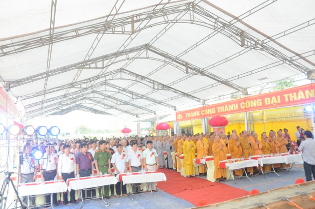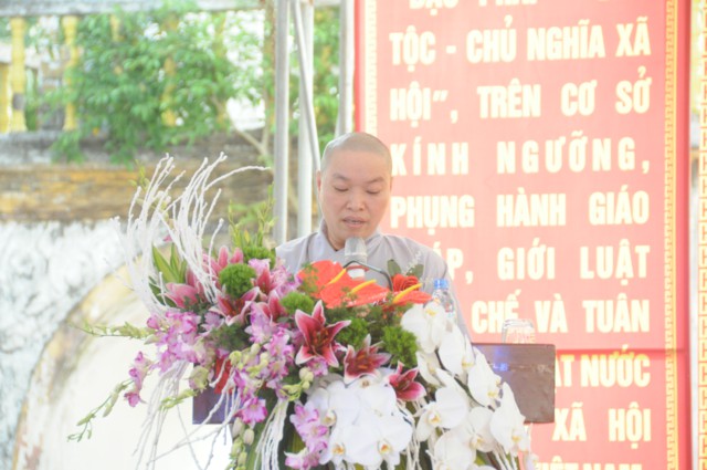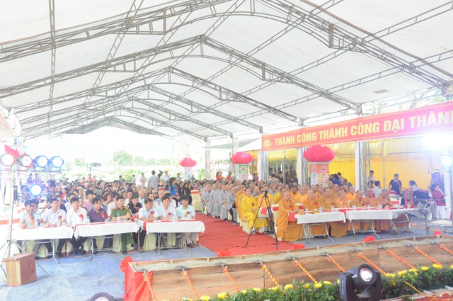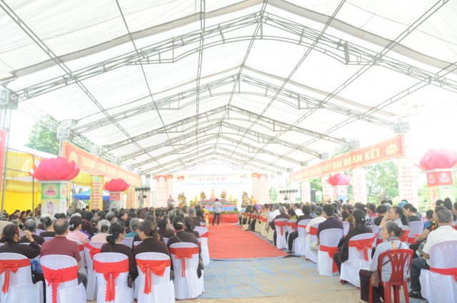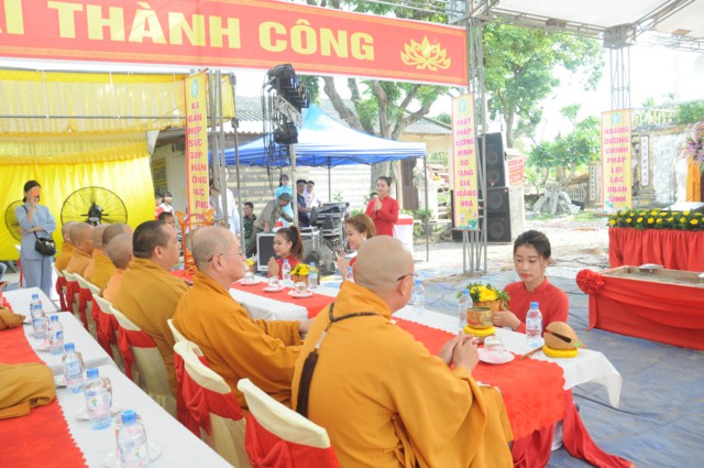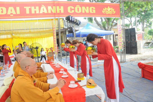 Tiếp theo đó, Sư Cô Thích Diệu Hướng – Trụ trì chùa Đồng Tải, trưởng BTC đại lễ đã lên báo cáo tóm tắt dự án xây dựng ngôi đại hùng bảo điện chùa Vĩnh Linh Quang Sơn ( Chùa Đồng Tải). Theo đó, chùa Đồng Tải vẫn được thiết kế xây dựng quay mặt về hướng Tây ( Theo như kiến trúc của chùa cũ), chùa sau khi hoàn thành sẽ bao gồm 5 gian tiền đường, 3 gian hậu cung; cột và phần khung, mái được kết cấu bằng bê tông, trong và ngoài trạm trổ, đắp vẽ hoa văn theo lối cổ truyền, mang đậm nét văn hóa, tín ngưỡng của dân tộc. Dự kiến công trình sẽ được xây dựng và hoàn thiện trong thời gian 3 năm với tổng kinh phí xây dựng khoảng hơn 5 tỷ đồng. Do nguồn kinh phí còn hạn hẹp, điều kiện vật chất còn khó khăn nên sư thầy trụ trì rất mong nhận được sự đóng góp vật tài, vật lực của các nhà hảo tâm, các mạnh thường quân, các Phật tử gần xa để công trình được thi công theo đúng tiến độ, đúng kế hoạch, sớm hoàn thiện, đưa vào sử dụng, phục vụ cho nhu cầu lễ bái, tu học, sinh hoạt tín ngưỡng văn hóa, tâm linh của đồng bào Phật tử gần xa và nhân dân địa phương.