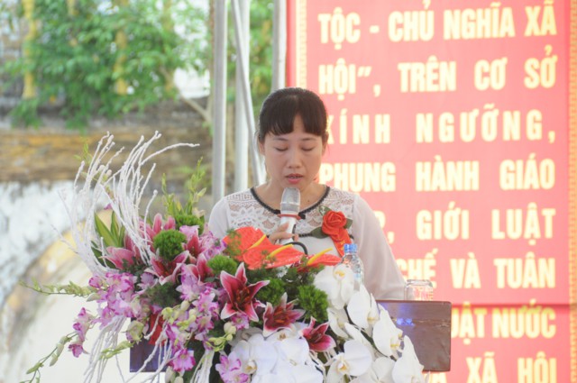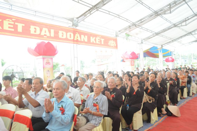 Thay mặt cho chính quyền địa phương, bà: Phạm Thị Phương Thanh – Phó chủ tịch UBND phường Phù Liễn đã lên phát biểu sơ lược quá trình hình thành và phát triển của chùa Đồng Tải, bà khẳng định các cấp chính quyền địa phương luôn ủng hộ các tổ chức tôn giáo đang hoạt động trên địa bàn phường Phù Liễn, đặc biệt là hoạt động trùng tu, xây dựng lại các nơi thờ tự theo tín ngưỡng văn hóa dân gian. Đồng thời bà cũng nêu lên vai trò của Phật giáo đối với sự phát triển của Đất nước, thực hiện theo đúng phương châm của GHPGVN đã đề ra: “ Phật giáo luôn đồng hành cùng Dân tộc”. Phật giáo góp phần rất lớn vào vấn đề an sinh xã hội, đặc biệt là các công tác từ thiện luôn được đặt lên vị trí hàng đầu, góp phần rất lớn vào sự nghiệp xây dựng và phát triển Đất nước.