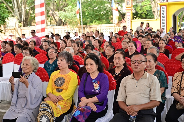 Về phía khách mời có sự hiện diện của ông: Dương Ngọc Anh – Trưởng ban Ban Tôn giáo, Sở Nội vụ thành phố Hải Phòng, đại diện phòng An ninh Nội địa Công an thành phố; ông: Đinh Quang Tấn – Bí Thư Đảng ủy, Chủ tịch HĐND phường Đằng Giang, quận Ngô Quyền; ông: Nguyễn Phương Nam – Phó Bí thư Đảng ủy, Chủ tịch UBND phường, cùng các ông bà lãnh đạo đại diện cho Đảng ủy, HĐND, UBND, UB MTTQVN, các ban ngành, đoàn thể phường Đằng Giang, Tổ dân phố Khu Trung và đông đảo quý Phật tử gần xa, nhân dân địa phương.