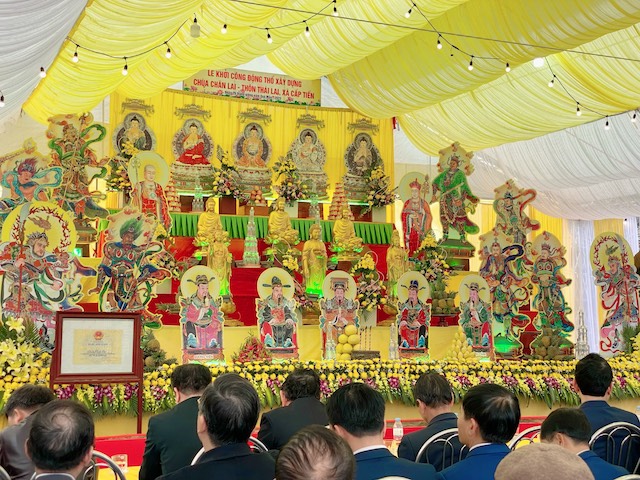Về phía lãnh đạo chính quyền huyện Tiên Lãng có sự hiện diện của các ông: Bùi Thành Cương – Phó Bí thư, Chủ tịch UBND huyện; ông: Nguyễn Ngọc Huy – Ủy viên Ban thường vụ huyện uỷ, Phó chủ tịch thường trực UBND huyện; ông: Nguyễn Văn Dũng – Phó Chủ tịch UBND huyện Tiên Lãng, cùng các ông bà đại diện cho các cấp ủy Đảng thuộc HĐND, UBND, UB MTTQVN huyện Tiên Lãng, xã Cấp Tiến, thôn Chân Lai, đại diện các nhà hảo tâm, các mạnh thường quân, các cơ quan ban ngành, đoàn thể, cùng đông đảo quý phật tử, quý thiện nam tín nữ gần xa và nhân dân địa phương.