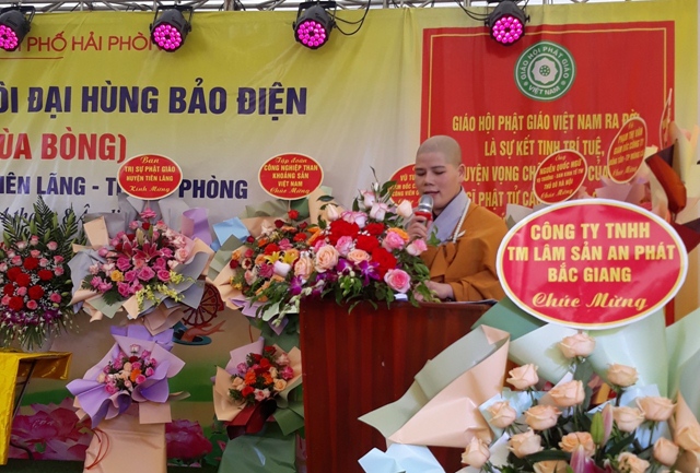 Dịp này, Sư cô Thích Diệu Thanh đã đón nhận những lẵng hoa tươi thắm chúc mừng từ Thượng tọa trưởng Ban trị sự GHPGVN huyện Tiên Lãng, lãnh đạo chính quyền thành phố Hải Phòng, tỉnh Quảng Ninh, tỉnh Bắc Giang, chính quyền huyện Tiên Lãng. xã Đại Thắng, thôn Lãng Niên, đại diện các doanh nghiệp trong và ngoài thành phố…