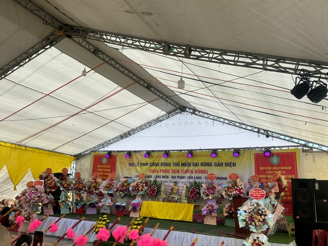 Trước khi kết thúc buổi lễ, chư tôn đức Tăng Ni, các cấp chính quyền đã tổ chức lễ dâng hương, bạch Phật, lễ chú nguyện và chính thức khởi công động thổ, xây dựng ngôi đại hùng bảo điện chùa Phúc Sen ( Chùa Bòng) trong không khí hoan hỷ, ấm tình đạo vị.