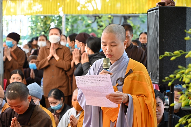 SC Thích Diệu Hướng đại diện sơn môn pháp phái dâng lời cảm tạ chư tôn đức đã quang lâm cử hành nghi lễ cầu siêu Giác linh cố Ni sư Thích Diệu Thụy
