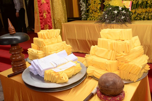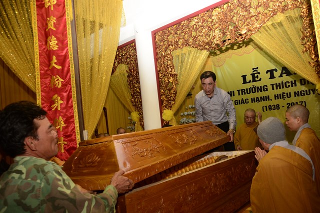 Lễ truy điệu và di quan được cử hành vào hồi 08h00 ngày 7 tháng 3 năm 2017 (tức ngày 10 tháng 2 năm Đinh Dậu). Sau đó cung tiễn kim quan và an trí tại chùa Đồng Thiện ( Hải Ninh tự), đường Thiên Lôi, phường Vĩnh Niệm, quận Lê Chân, thành phố Hải Phòng.