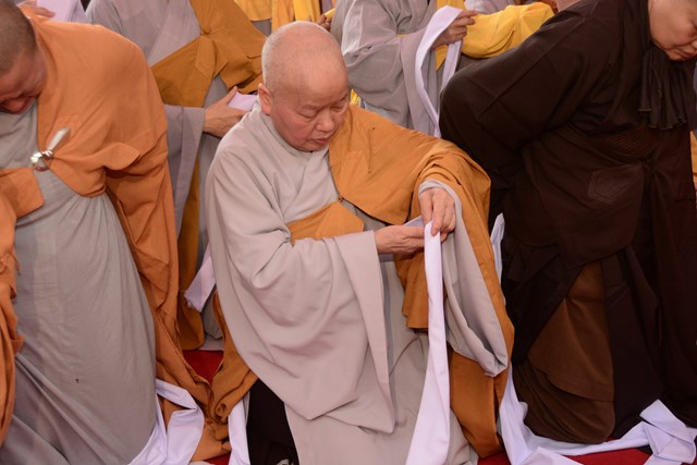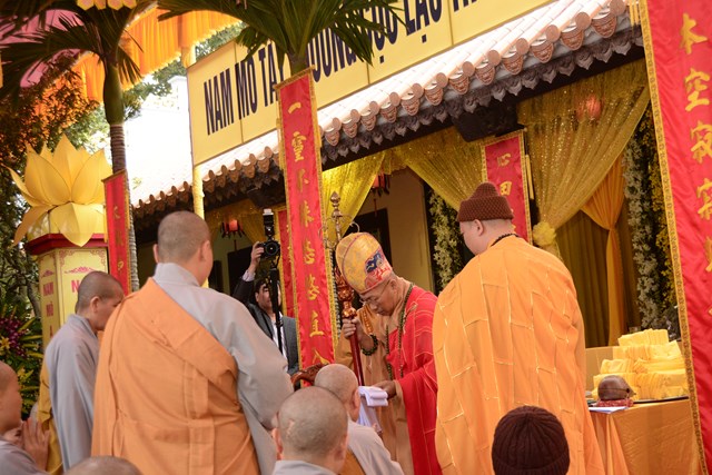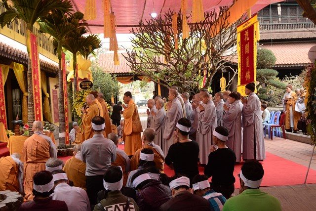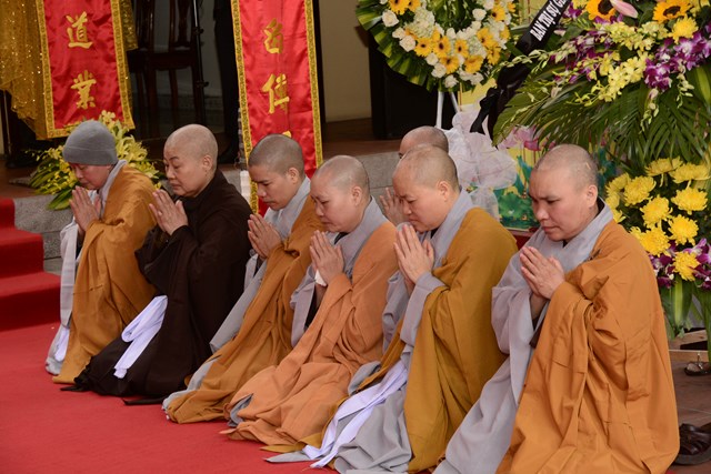 Cũng trong buổi sáng nay, Hòa thượng Thích Đồng Điển – Sám chủ của buổi lễ đã cử hành lễ thành phục, thọ tang cho sơn môn, môn đồ pháp quyến, thân quyến của Ni trưởng Thích Diệu Tâm. Ngay sau khi lễ thành phục, thọ tang kết thúc là lễ viếng của đại diện HĐTS TƯ GHPGVN, Ban trị sự GHPGVN thành phố Hải Phòng, Ban trị sự GHPGVN các quận huyện của thành phố Hải Phòng, các cựu tăng ni sinh Học viện PGVN tại Hà Nội khóa I do HT. Thích Thanh Nhã làm trưởng đoàn, cựu tăng ni sinh Học viện PGVN khóa II, Chư tôn đức Tổ đình Đông Hưng, TP.HCM do HT. Thích Đồng Điển làm trưởng đoàn, Chư tôn đức tổ đình Linh Quang Trà Lũ Trung, tỉnh Thái Bình do TT. Thích Thanh Nghĩa làm trưởng đoàn, Chư tôn đức tổ đình Vĩnh Nghiêm do TT. Thích Giác Dũng làm trưởng đoàn, BTS GHPGVN tỉnh Lạng Sơn do TT. Thích Quảng Truyển làm trưởng đoàn cùng chư tôn đức Tăng Ni, Phật tử các tỉnh thành đến để tiễn biệt nhục thân cố Ni trưởng lần cuối.