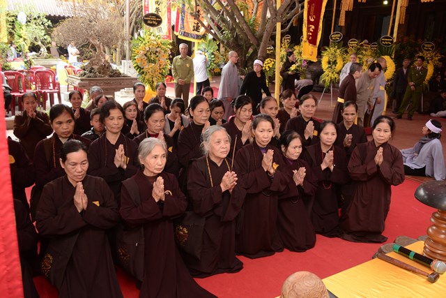 Quang lâm lễ nhập kim quan Ni trưởng Thích Diệu Tâm có Hòa thượng Thích Quảng Tùng – Phó chủ tịch HĐTS TƯ GHPGVN, trưởng BTS GHPGVN thành phố Hải Phòng; Hòa thượng Thích Thanh Nhã – Ủy viên thường trực, phó trưởng ban nghi lễ TƯ GHPGVN; Hòa thượng Thích Đồng Điển – Trưởng sơn môn, viện chủ tổ đình Đông Hưng, TP.HCM; TT. Thích Thanh Giác – Ủy viên HĐTƯ TƯ GHPGVN, phó trưởng Ban trị sự GHPGVN thành phố Hải Phòng, chư tôn đức ủy viên thường trực BTS GHPGVN thành phố Hải Phòng, chư tôn đức trưởng phó ban trị sự GHPGVN các quận, huyện của thành phố Hải Phòng, chư tôn đức Tăng Ni trụ trì các chùa trên địa bàn Hải Phòng, chư tôn đức tăng ni các tỉnh, thành phố, sơn môn, môn đồ pháp quyến, thân quyến của Ni trưởng Thích Diệu Tâm và đông đảo quý Phật tử gần xa, nhân dân địa phương tới đảnh lễ nhục thân cố ni trưởng và tham dự buổi lễ.